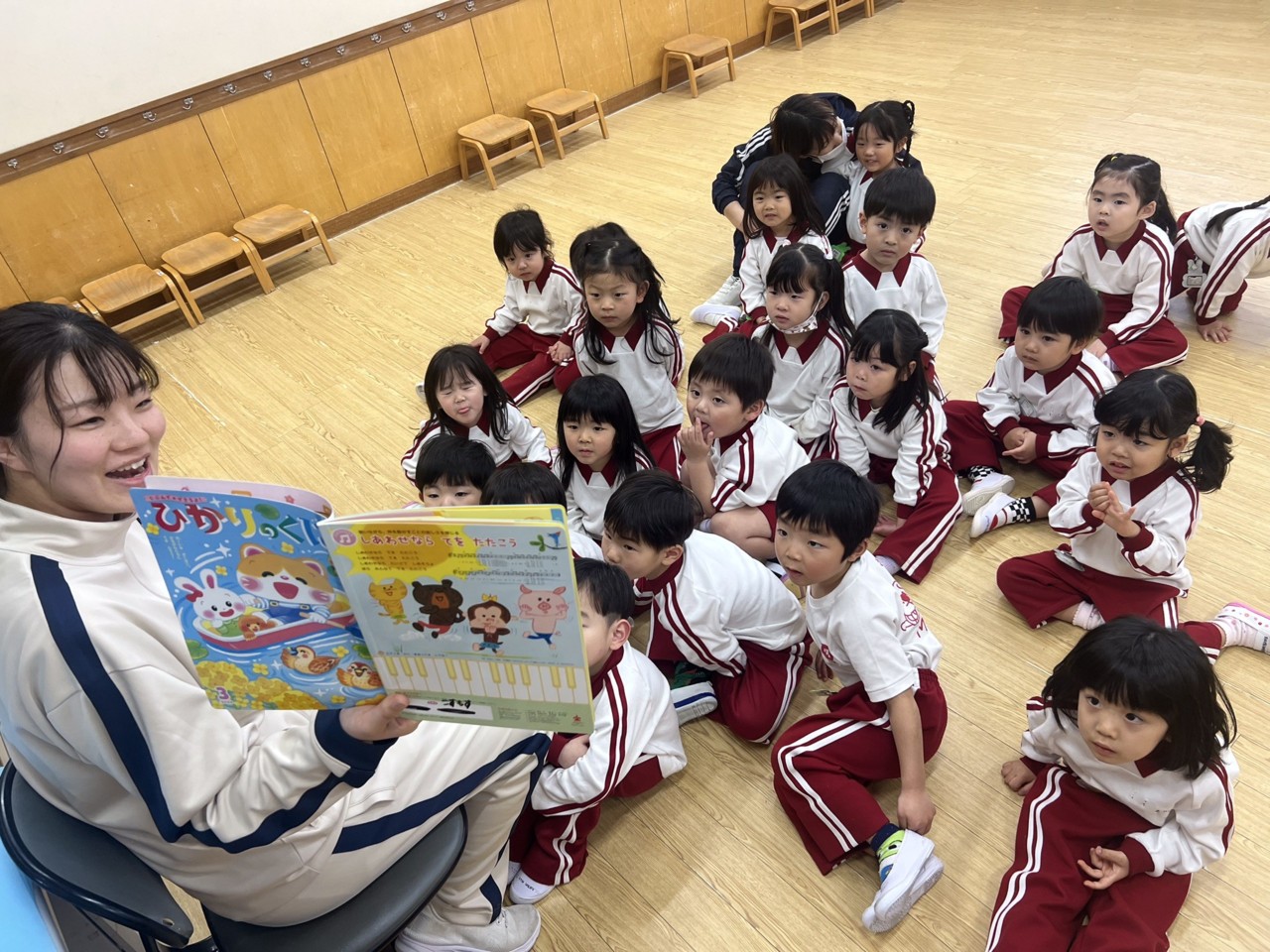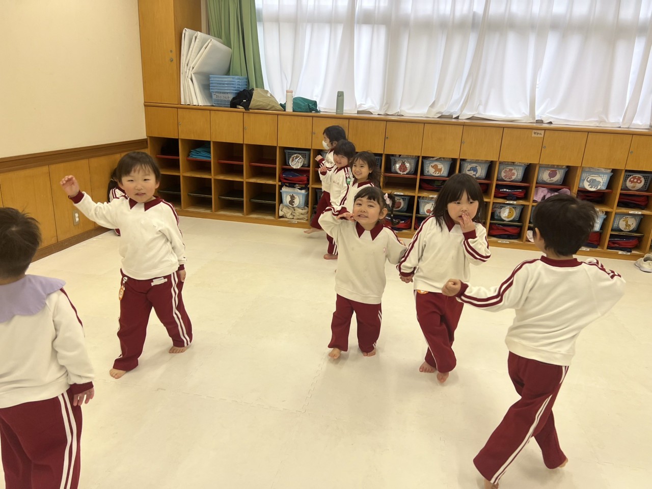 今日は雨で、お部屋ではしっかりリトミックなどをして