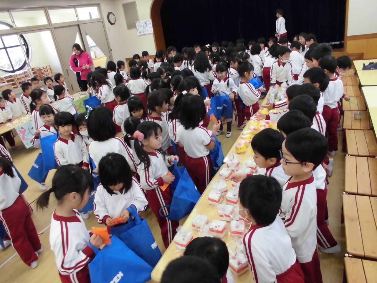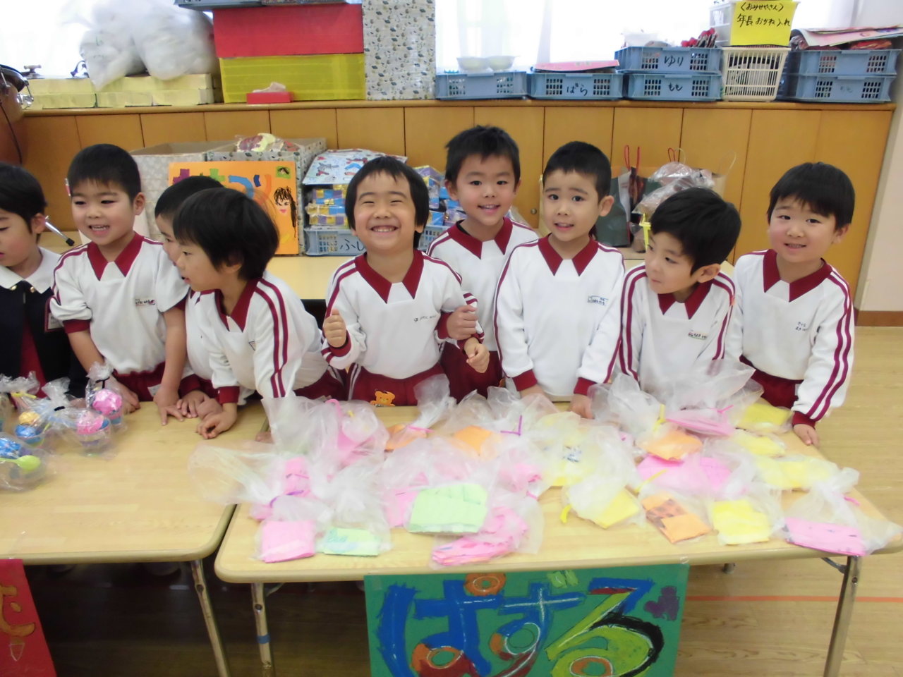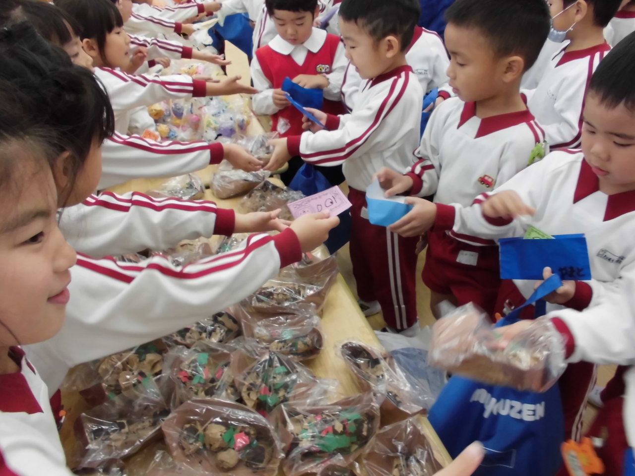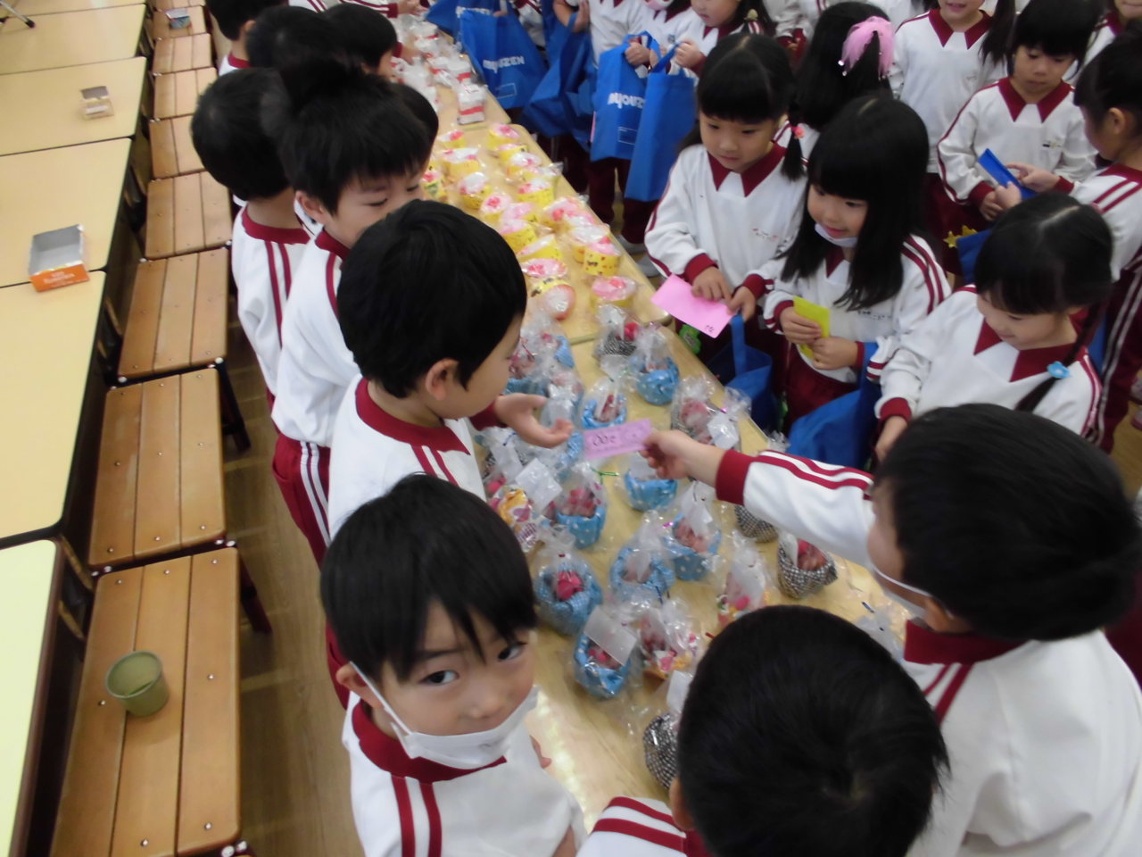 買い物が終わった後は、お友達と品物を見せ合って