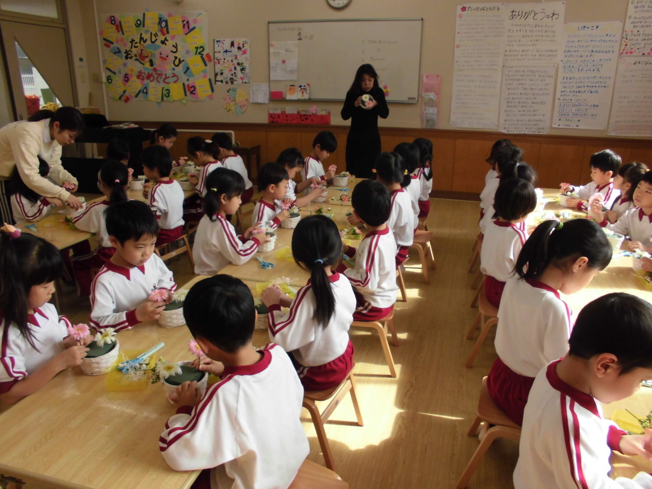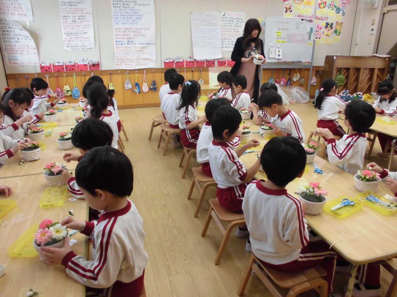 先生のお話を聞いて、とってもかわいいお花のアレンジが出来ました。