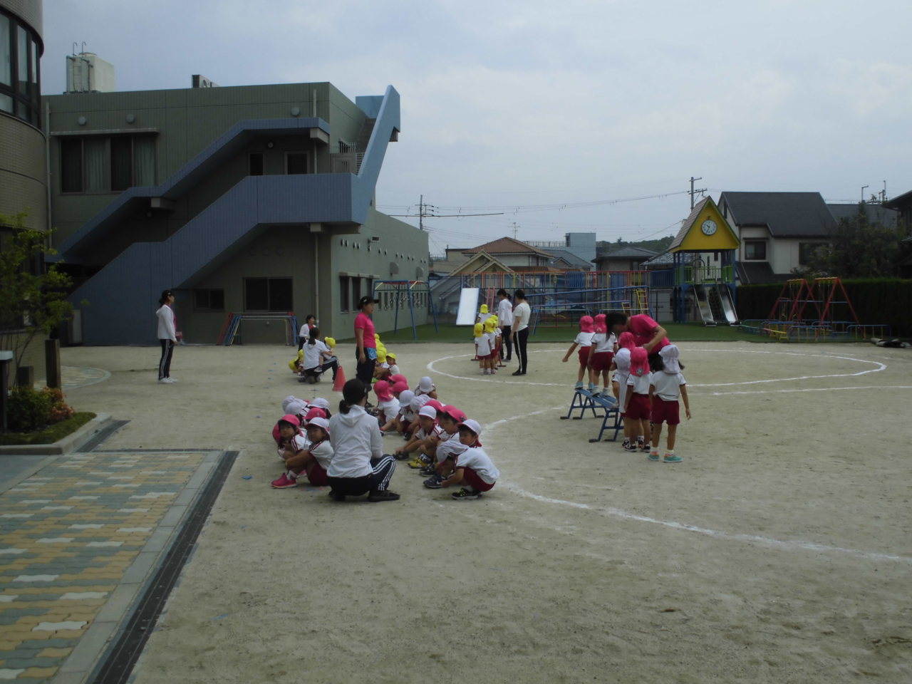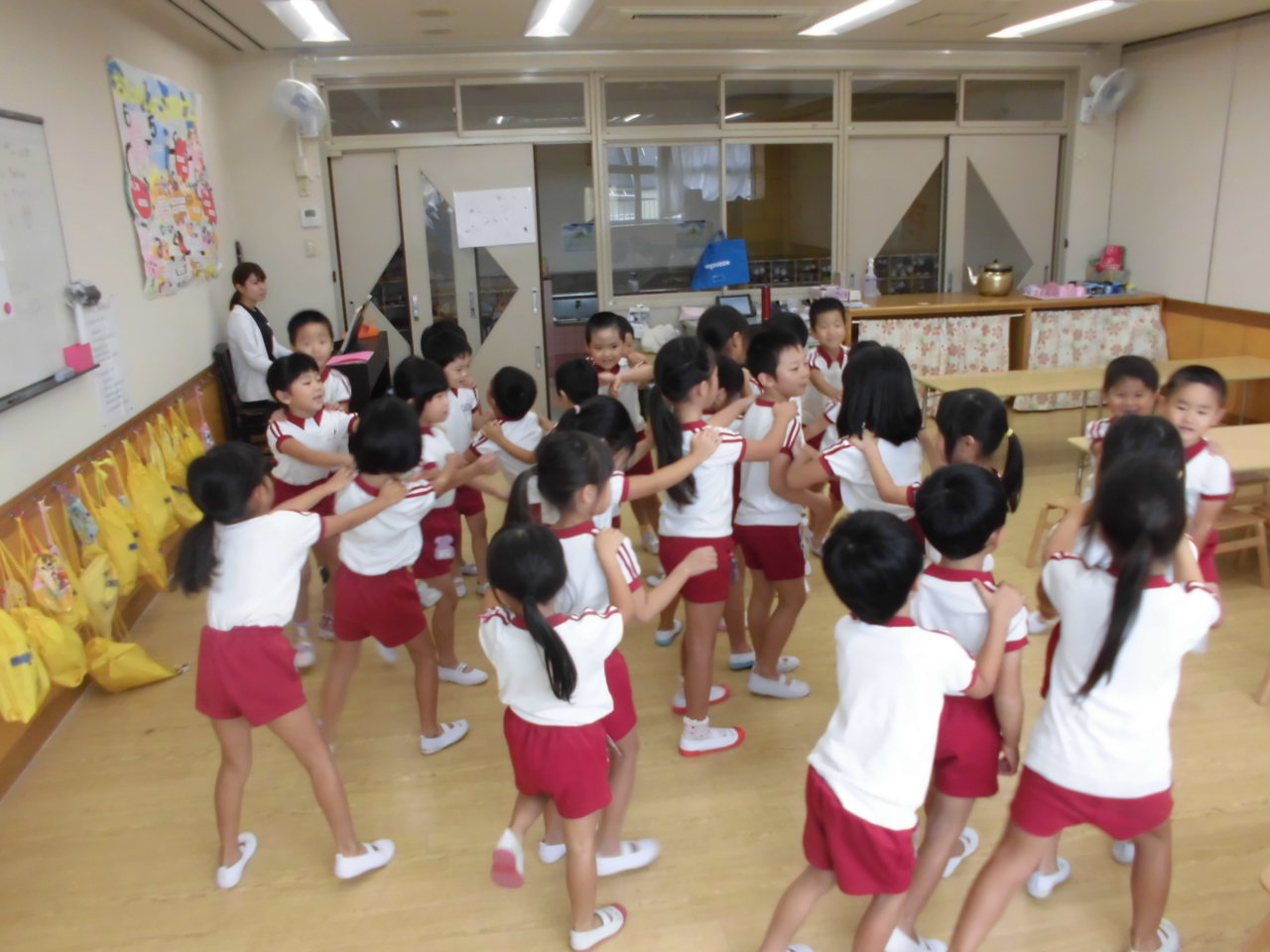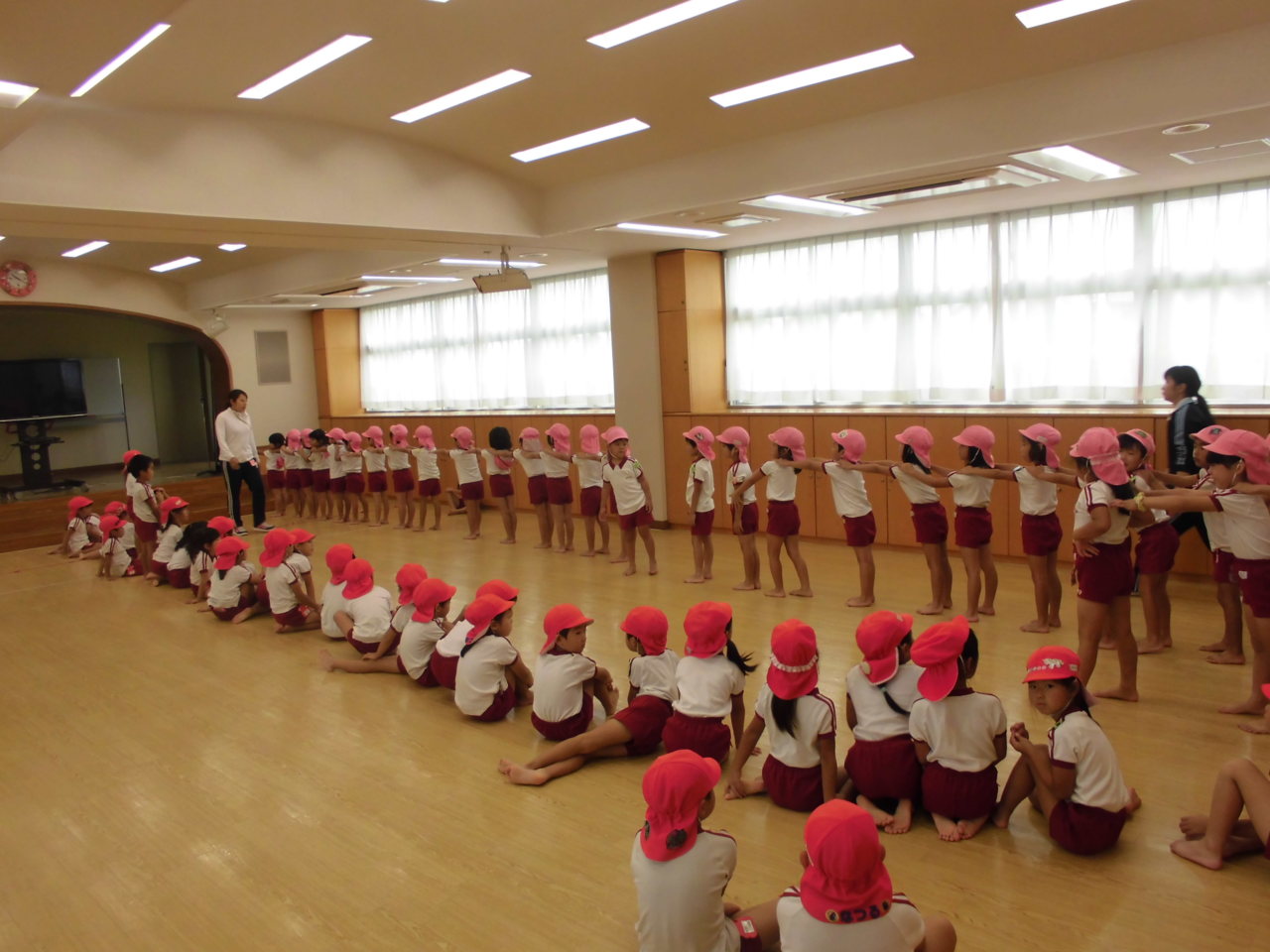 今日の活動は、年少さんがお外で運動会おゆうぎ遊びをしてました。