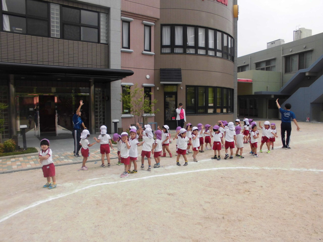 屋上で遊んでいた年中さんが上から見つけて、手を振ってくれたんです。