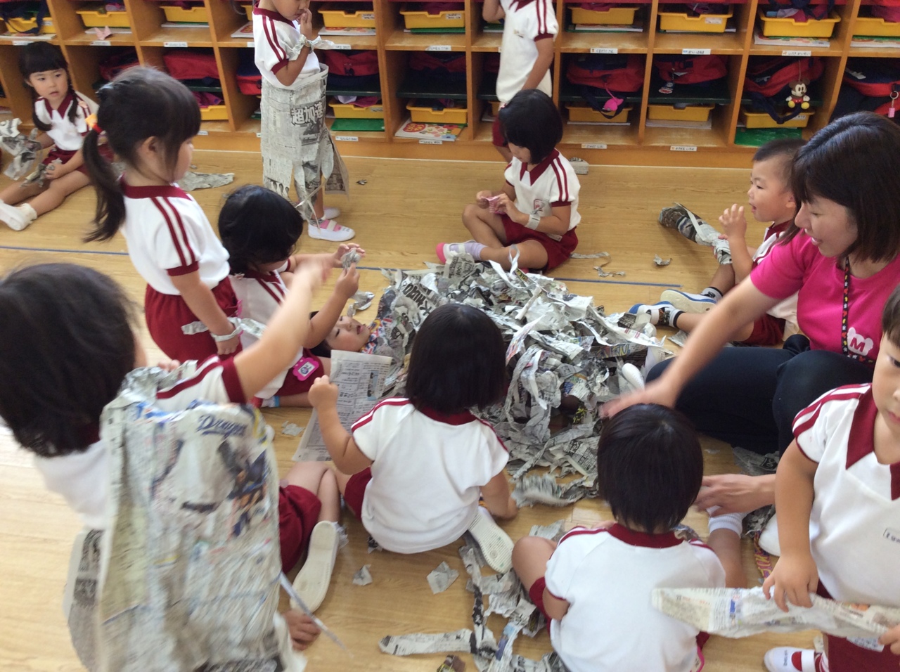 年少組は絵具をしたり、新聞遊びをしてました。その様子を撮影したので、後日お楽しみに~