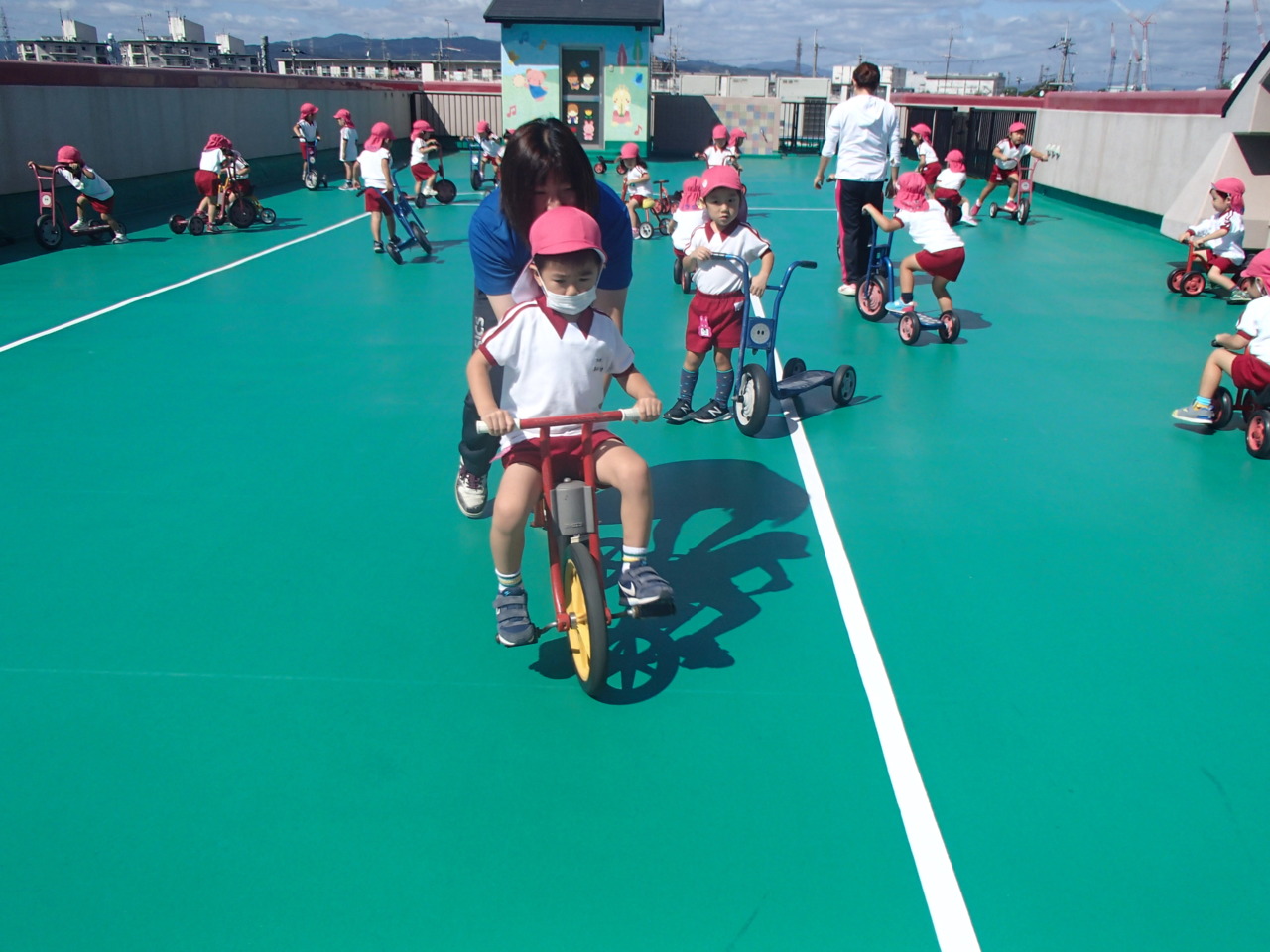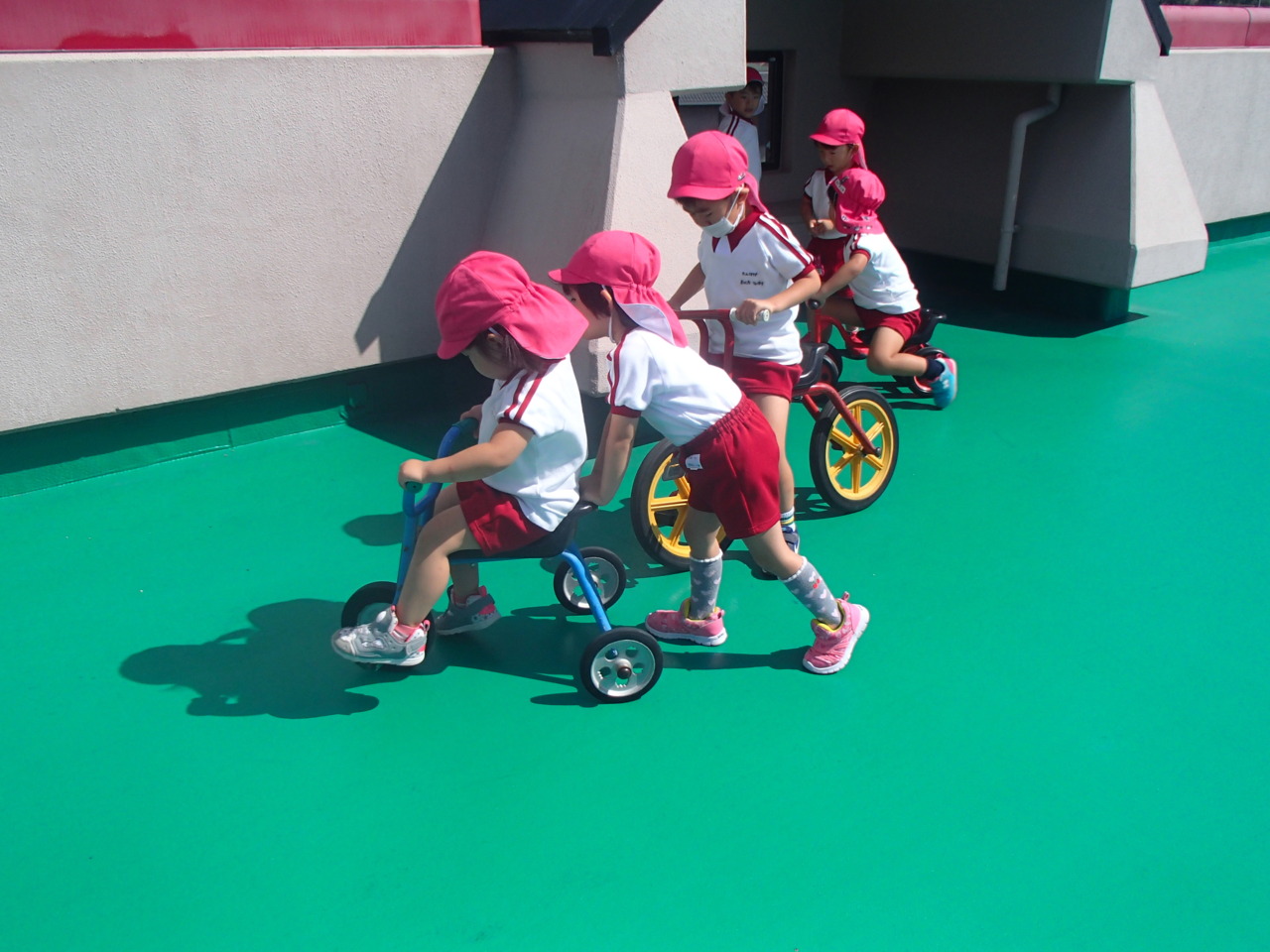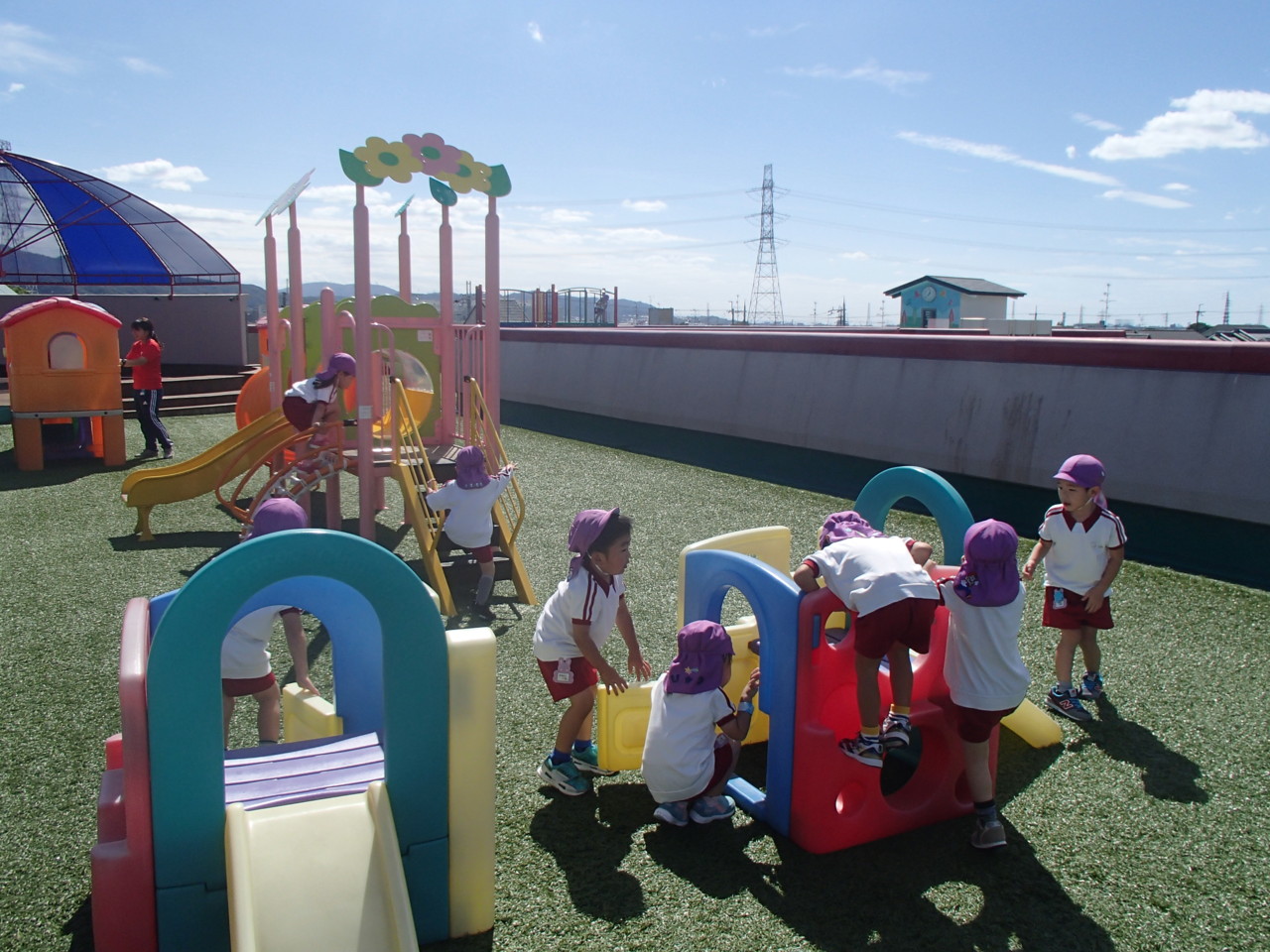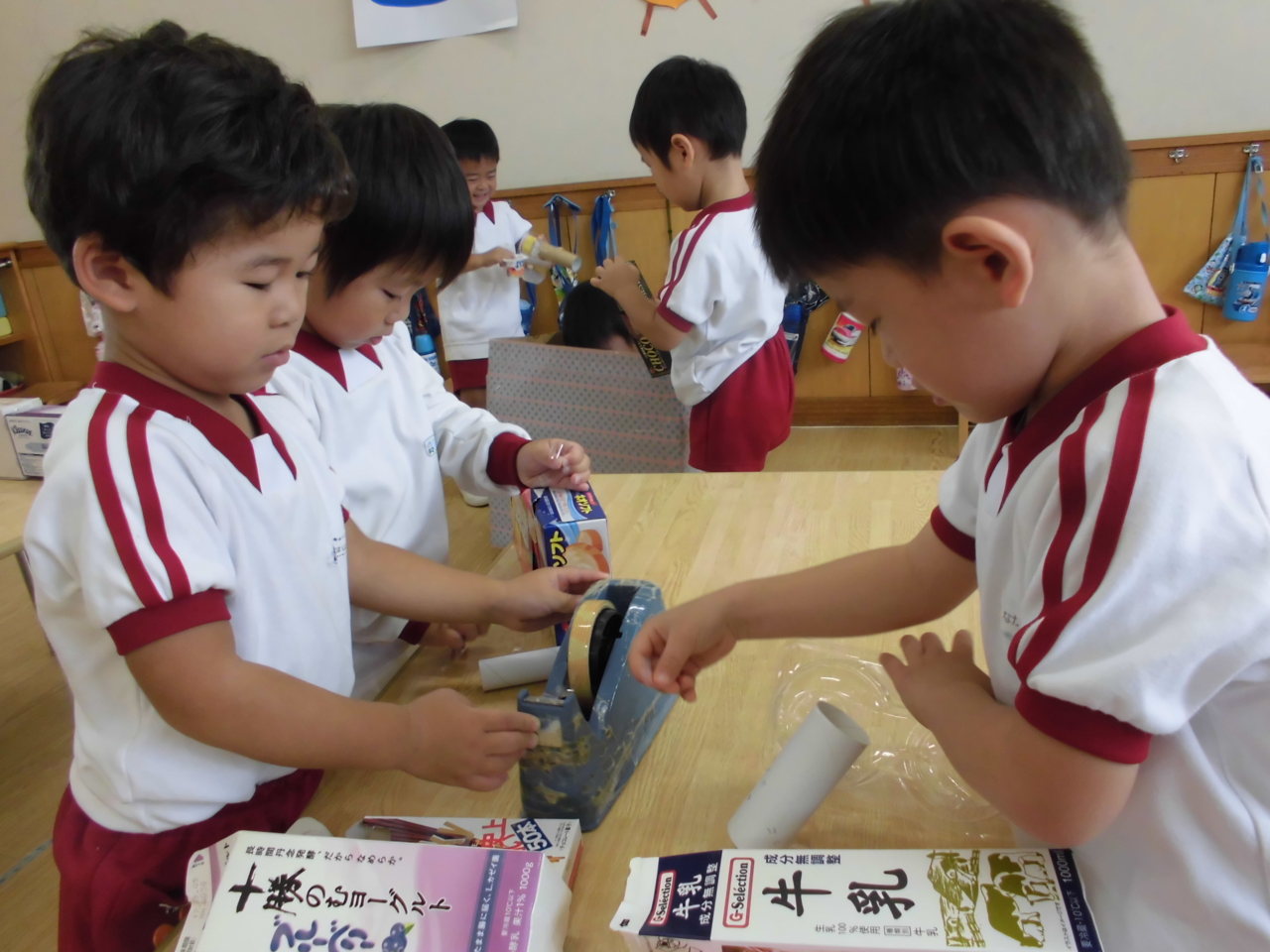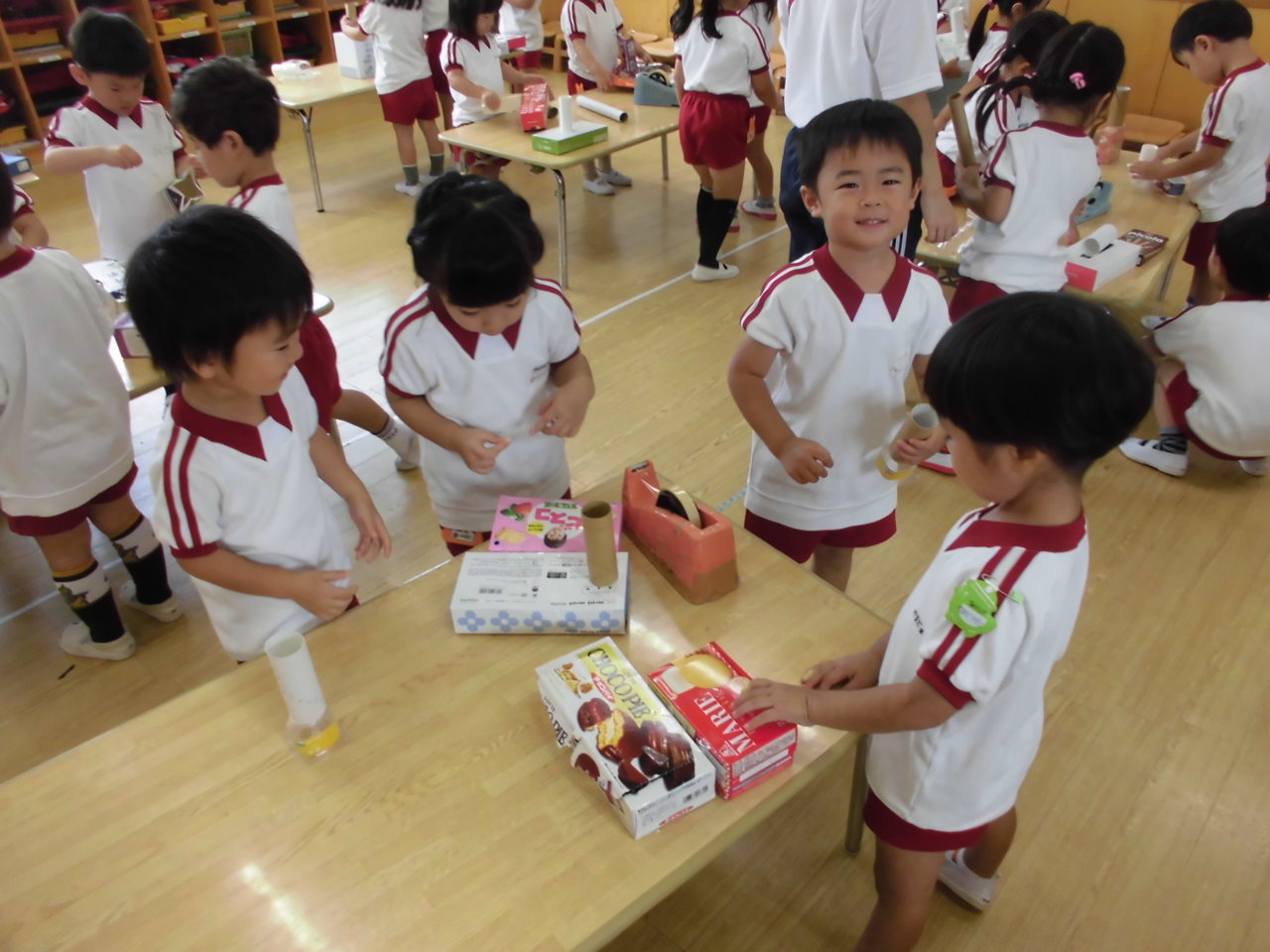 年少組は屋上で遊んだり、廃材遊びをしたり、園庭が空いてる時に遊んだり