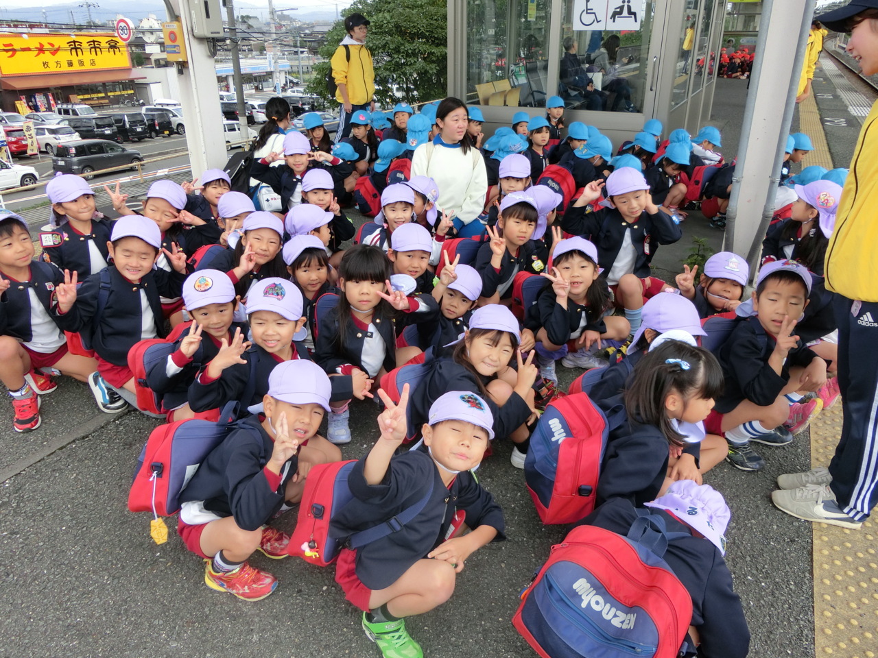 年長組は電車で行きます。