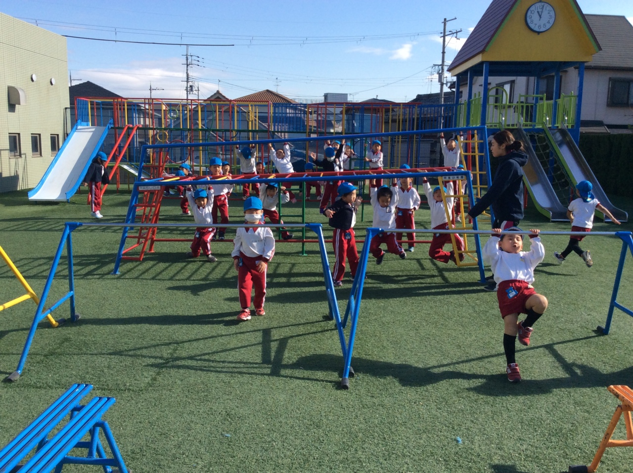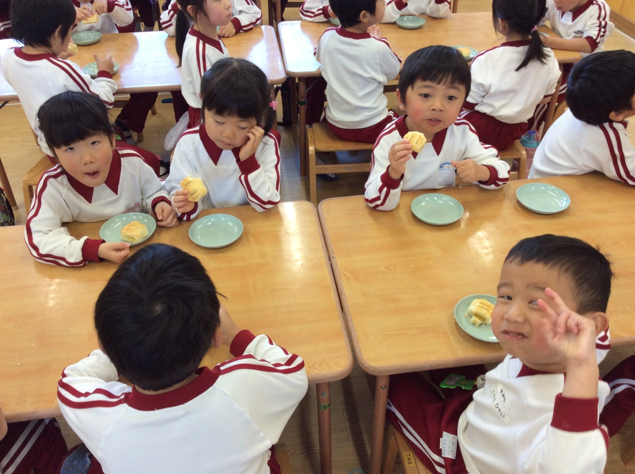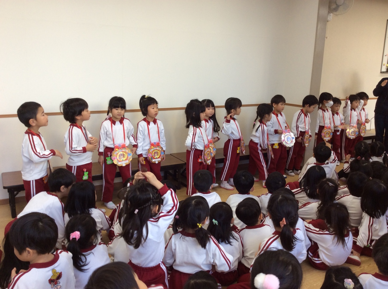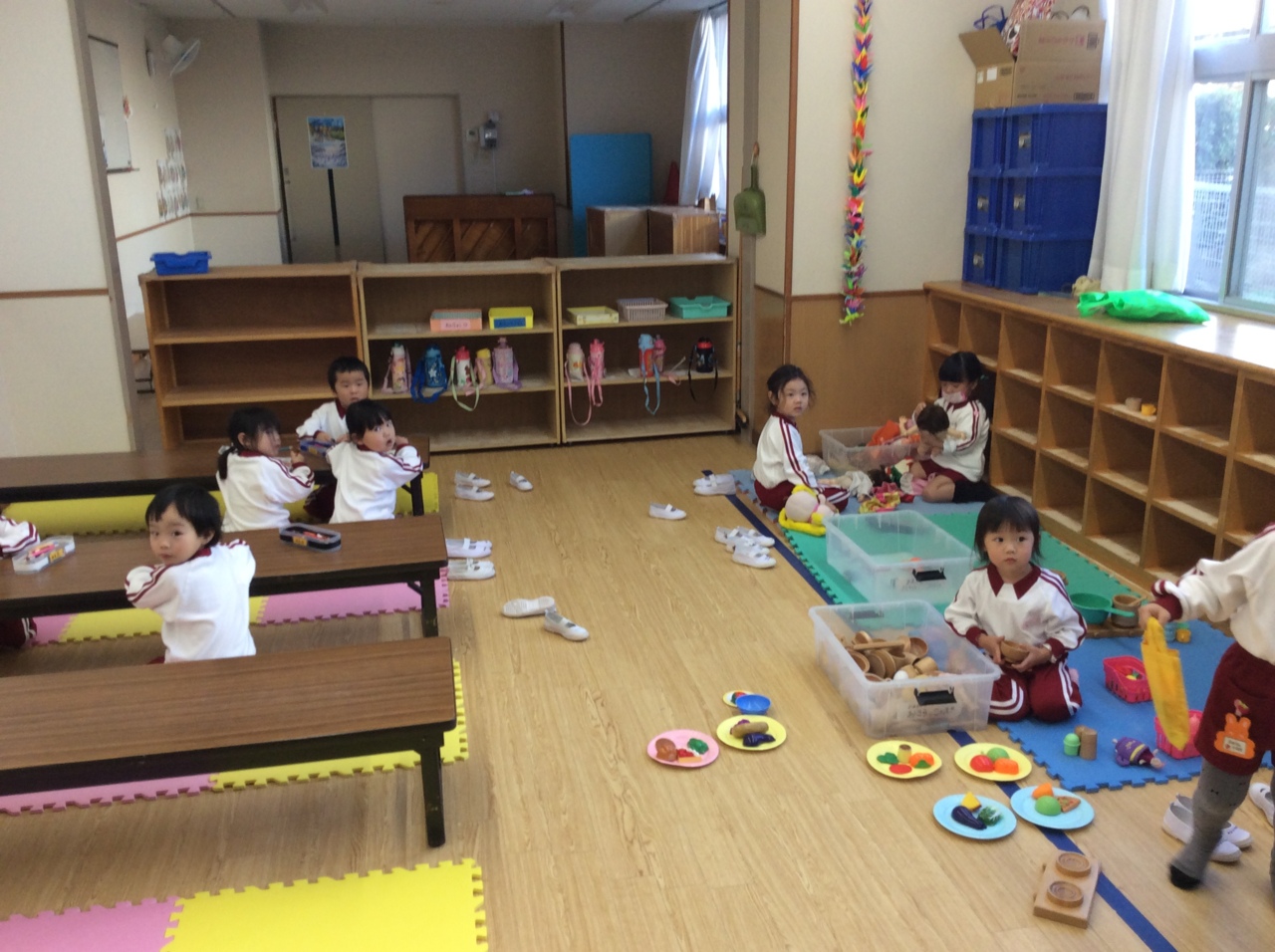 欠席も少なく、年長組、年中組合わせて2人 年少組入れても14人です。