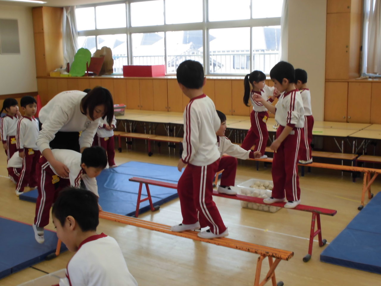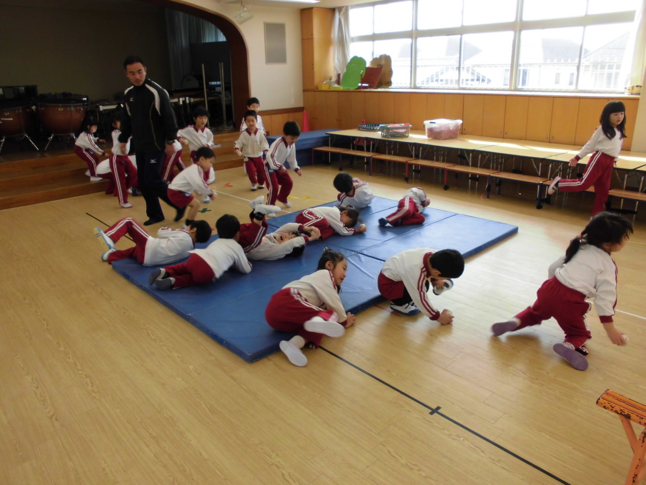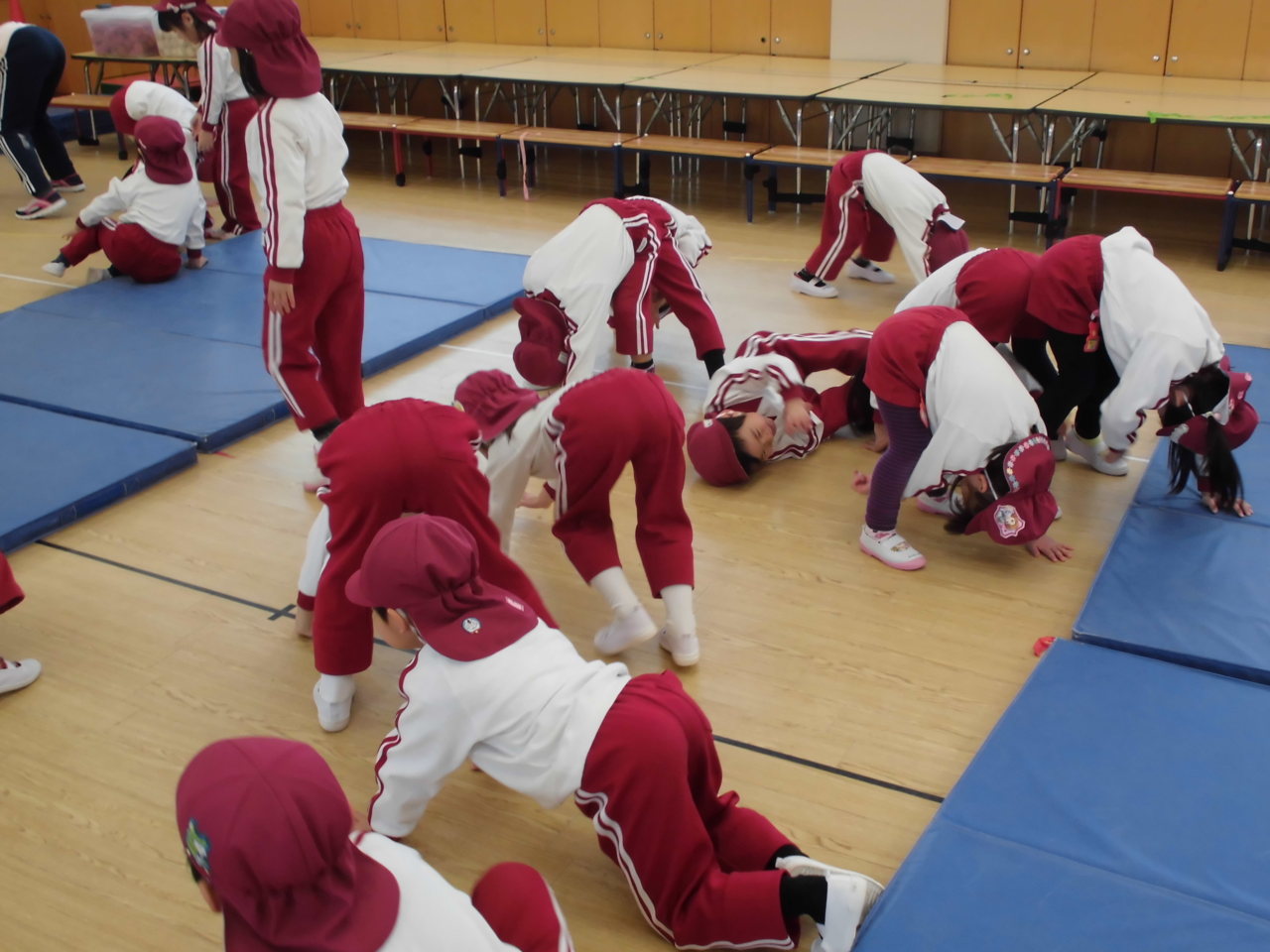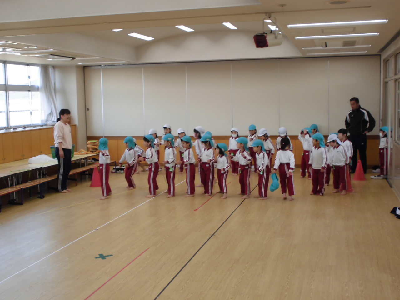 今日はお遊戯室でエール体育指導でした。
