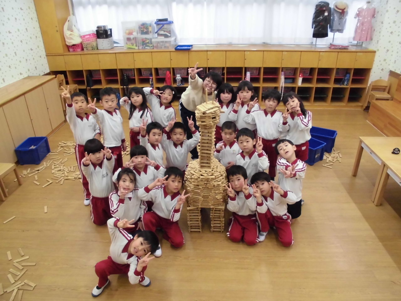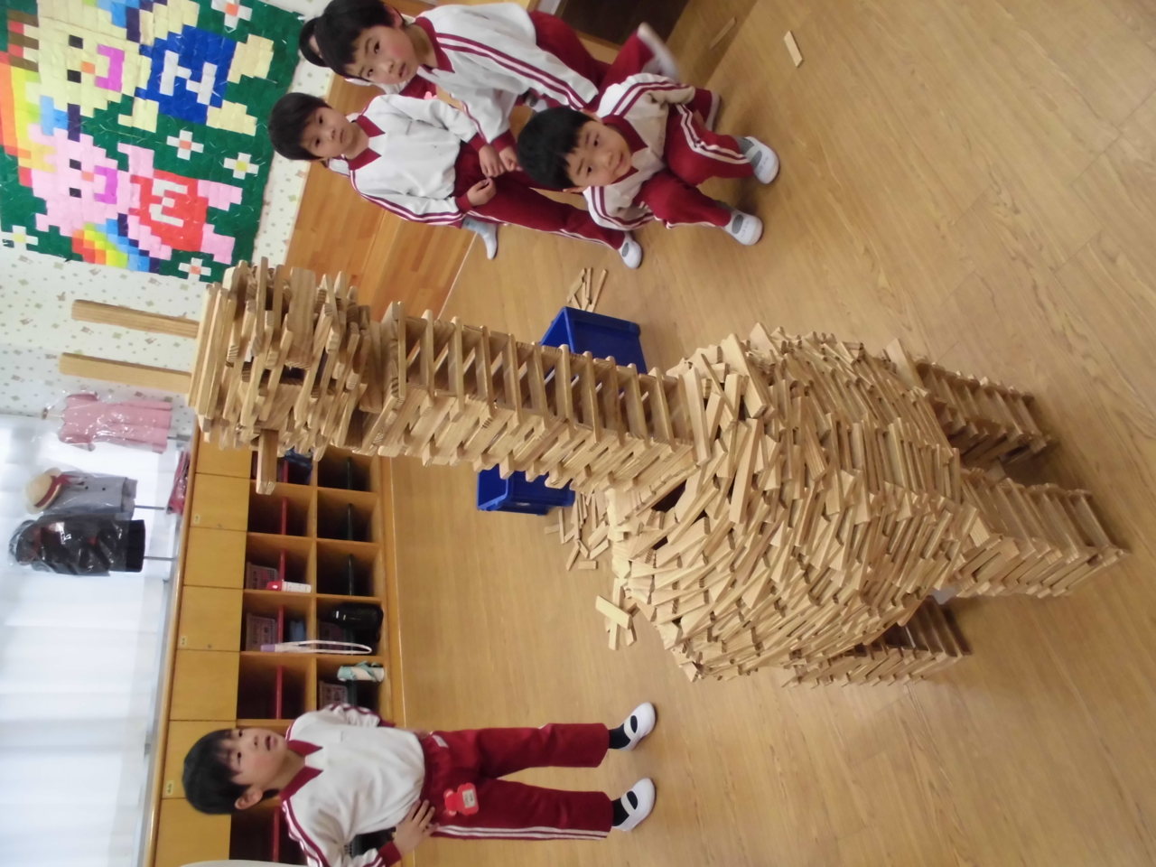 年長組の延長保育でカプラでキリン作りました!