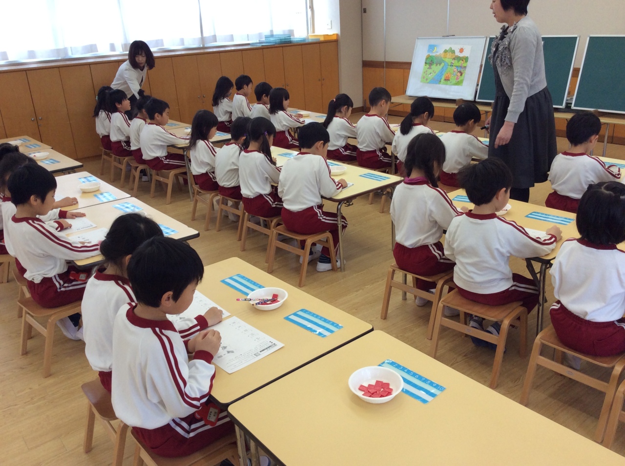 幼稚園の遊戯室が1年生の教室に早変わり!!