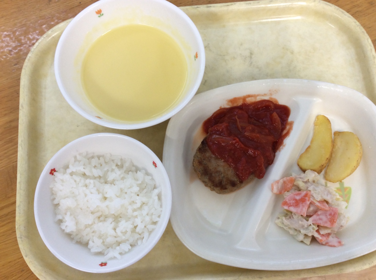 今日のメニューのハンバーグとポテトフライはリクエストです。