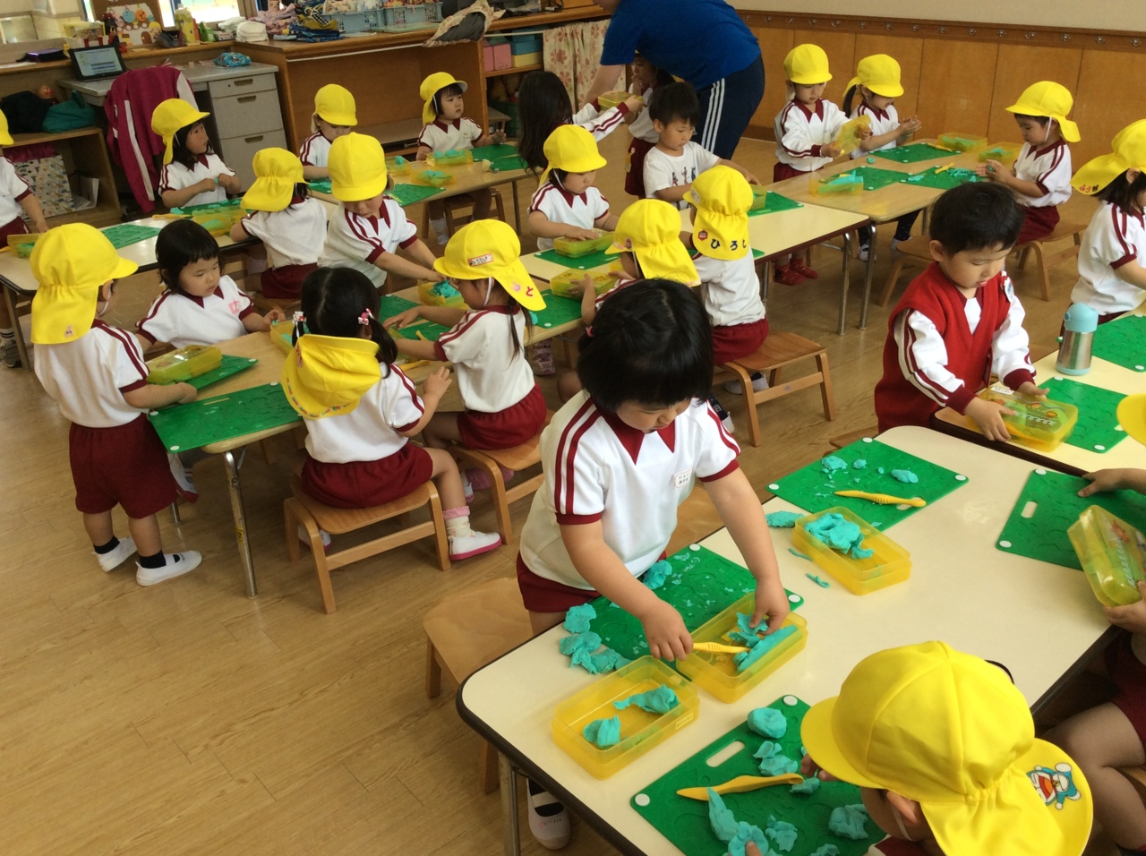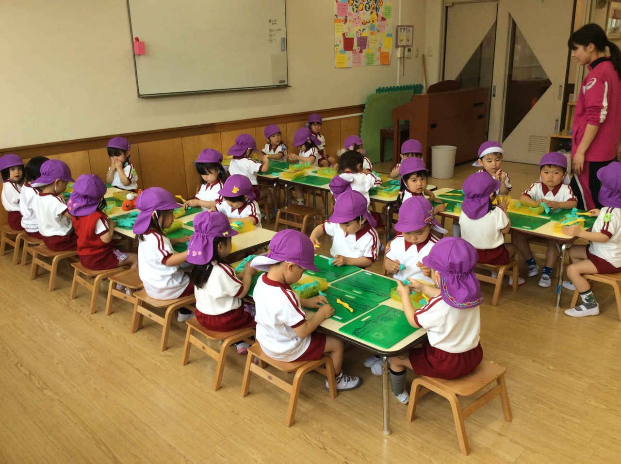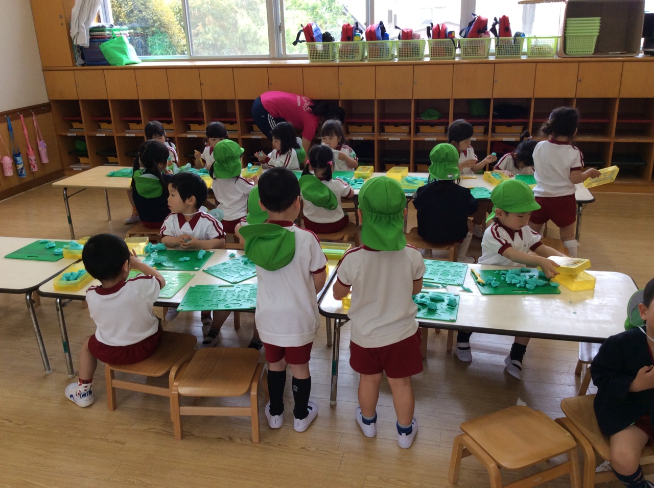 年少組は粘土あそびをしたり、お歌うたったりしました。