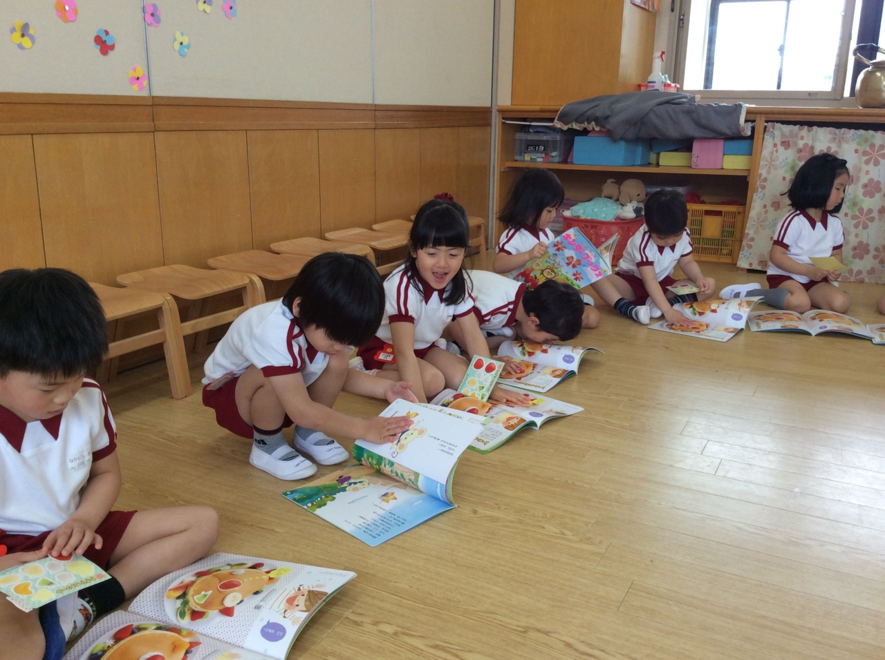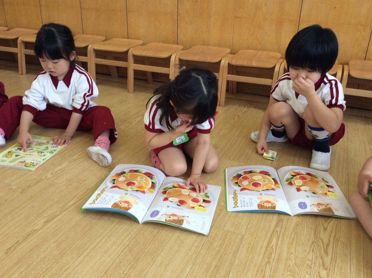 年中組は絵本してたり、リトミックをして遊んでいました。