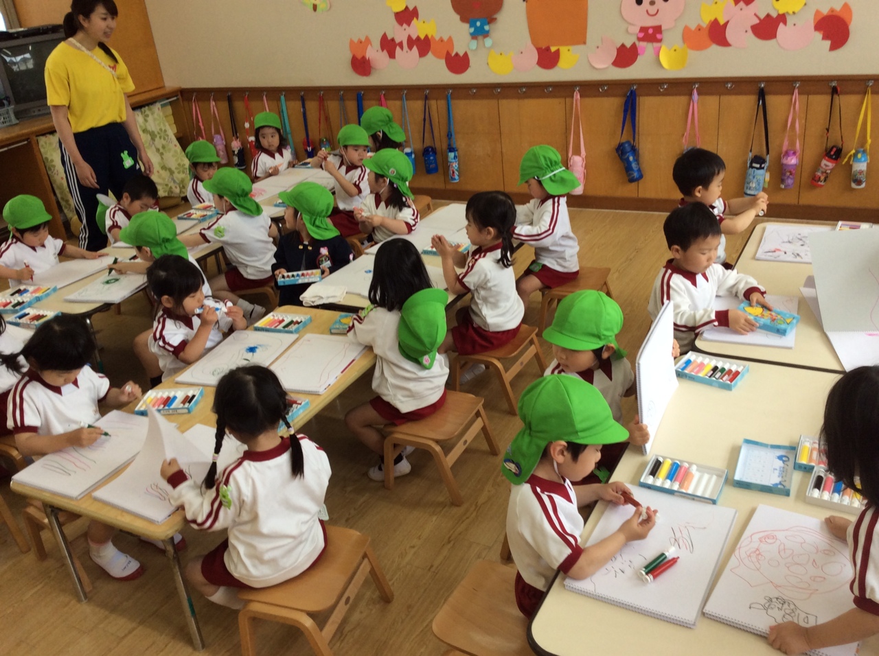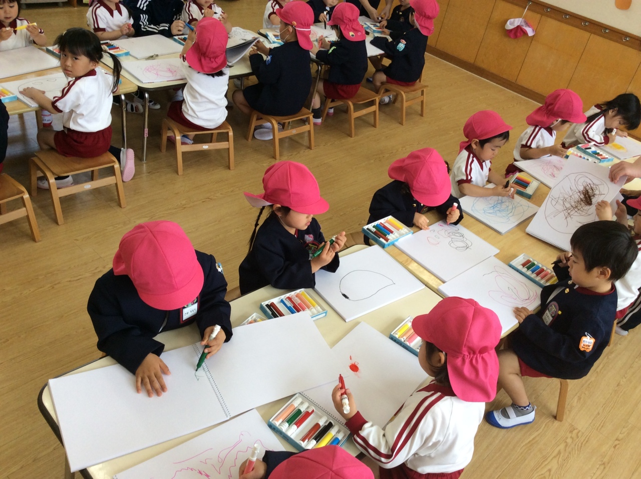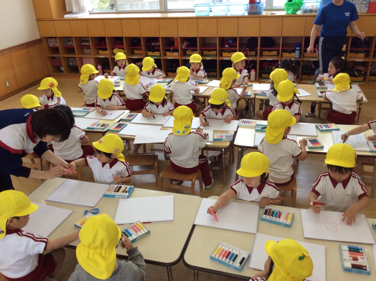 年少組は自由帳とマーカーの使い方です。