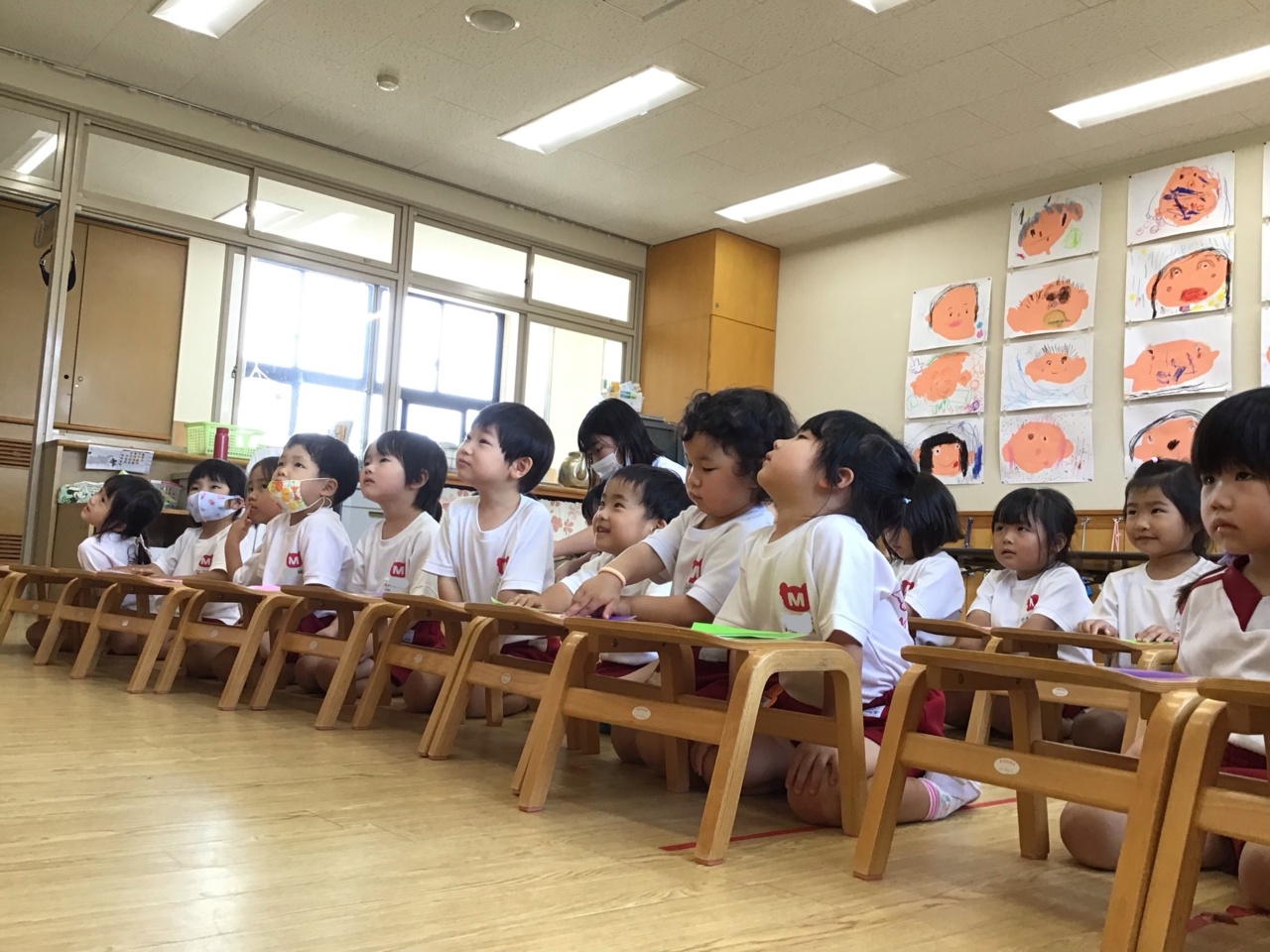 年少組さん 先生のお話を一生懸命聞いてる姿にキュン