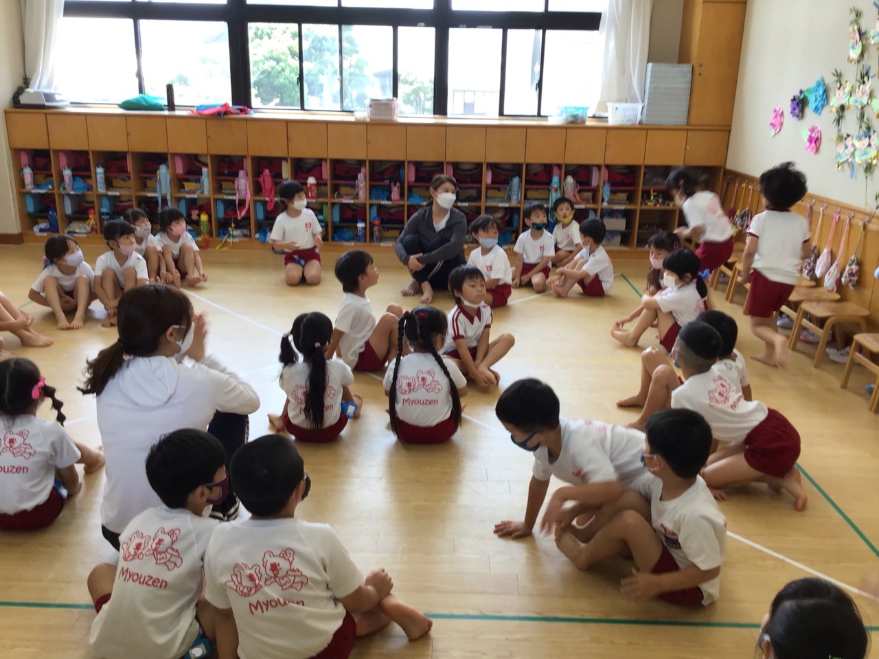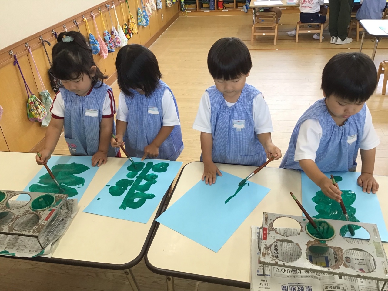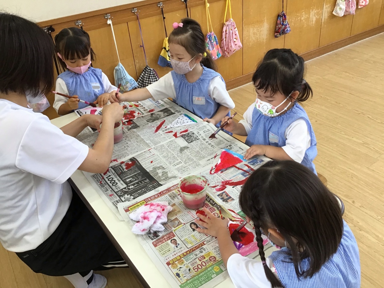 絵本を見た後で絵の具あそびだよ~どんな絵か楽しみですね~