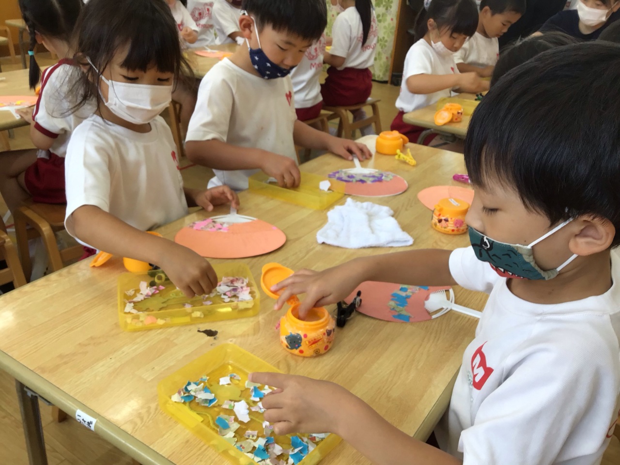 夏祭りごっこに向けて、ちょうちんづくりです(^^)