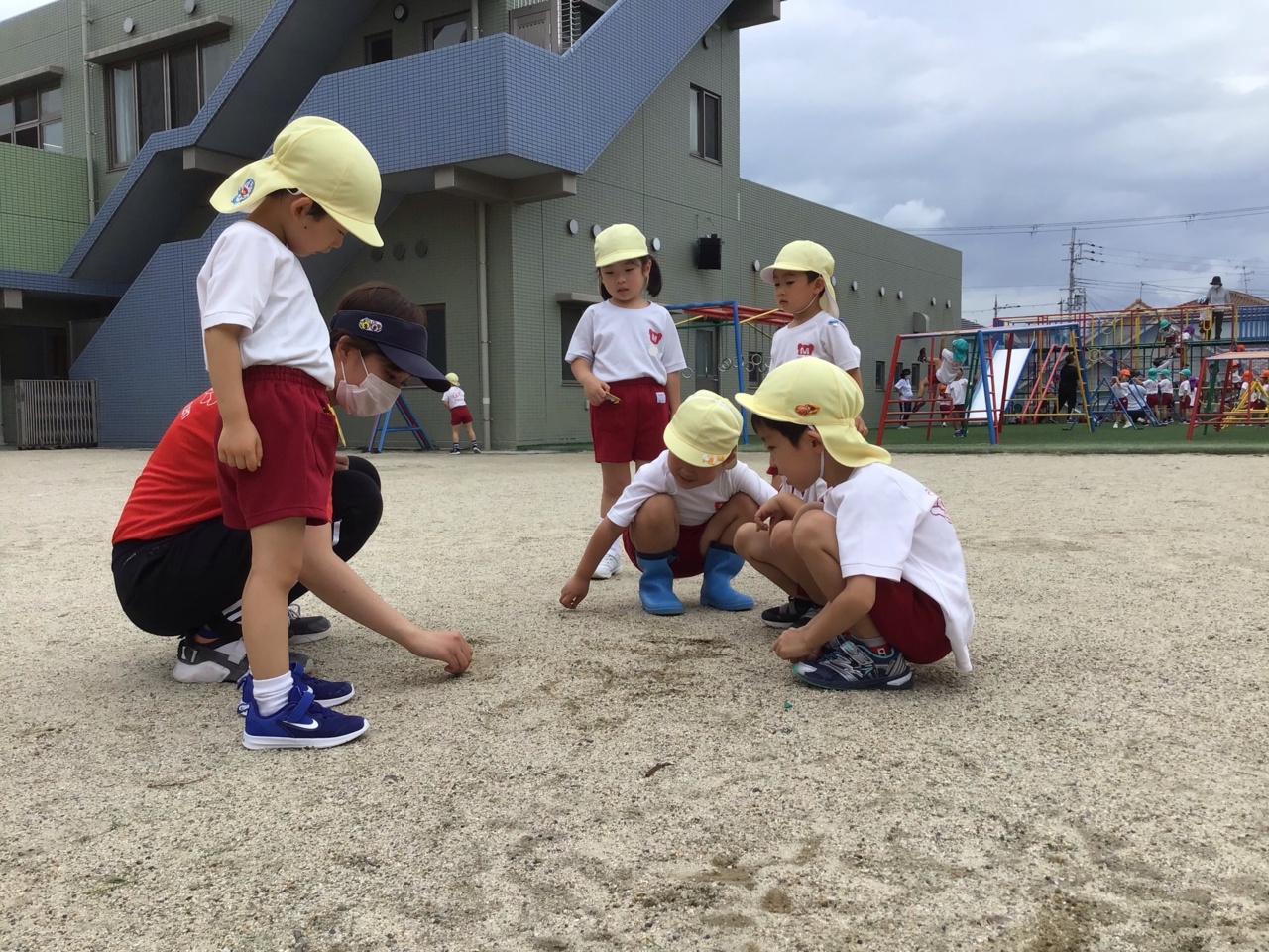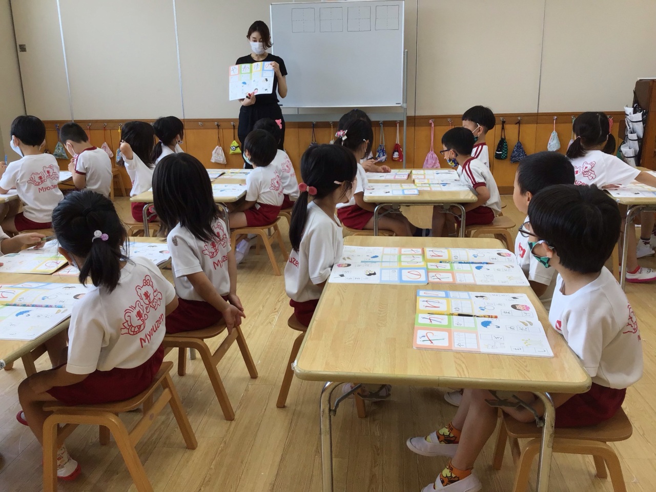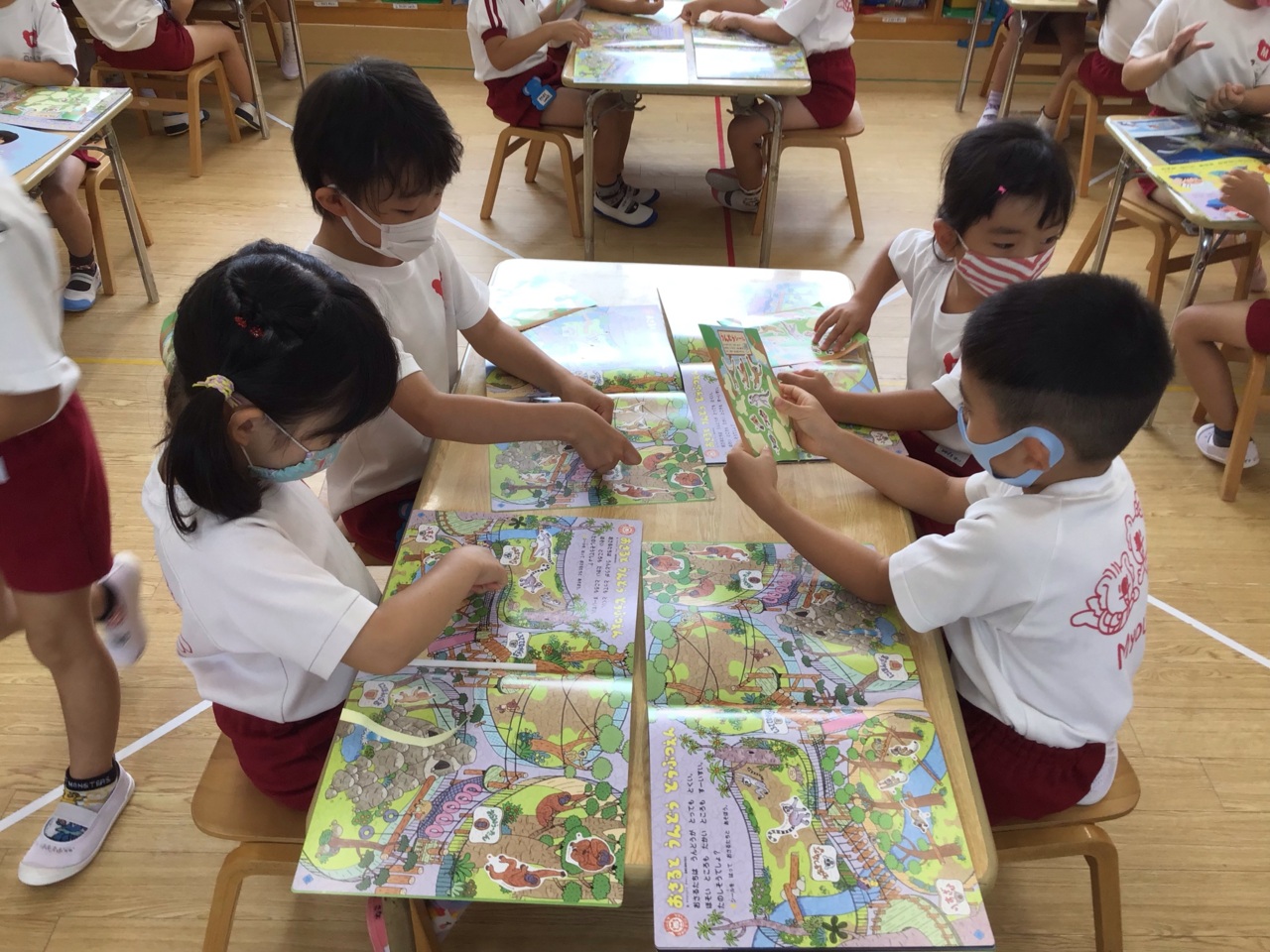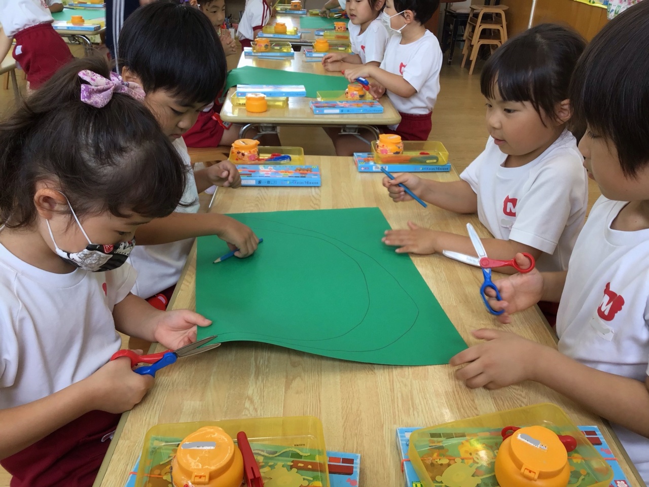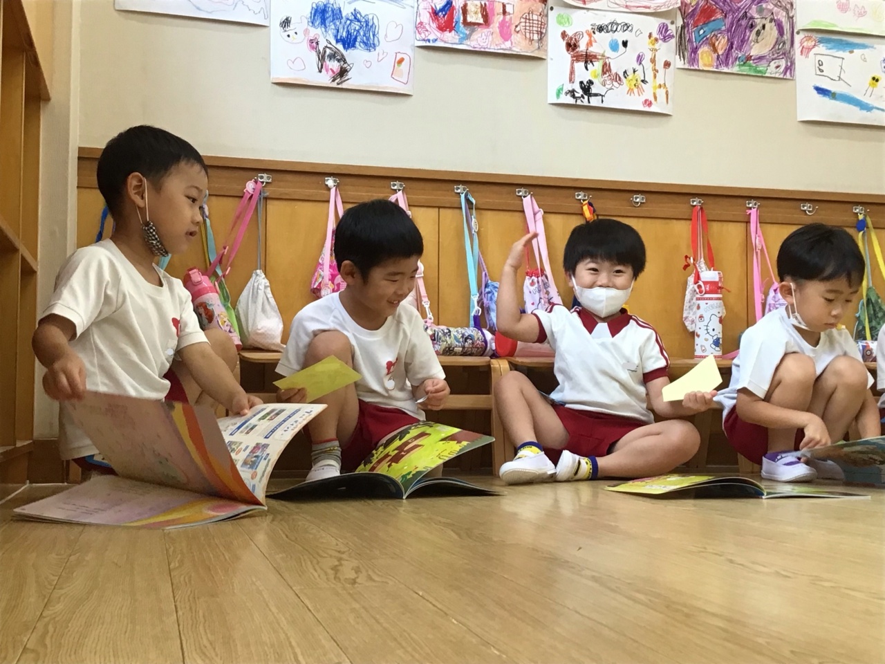 幼稚園では、晴れ間には園庭や屋上で遊んだり、リトミックやゲーム遊びで