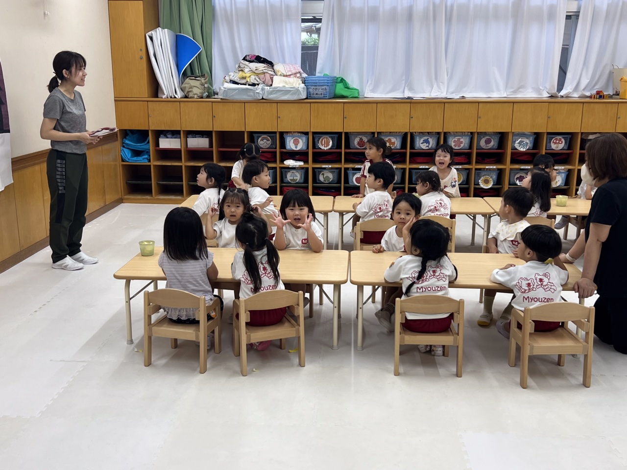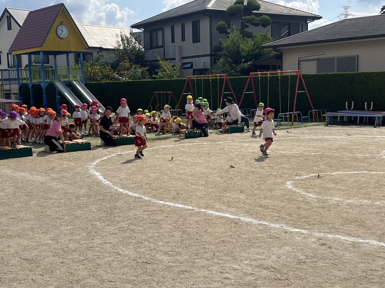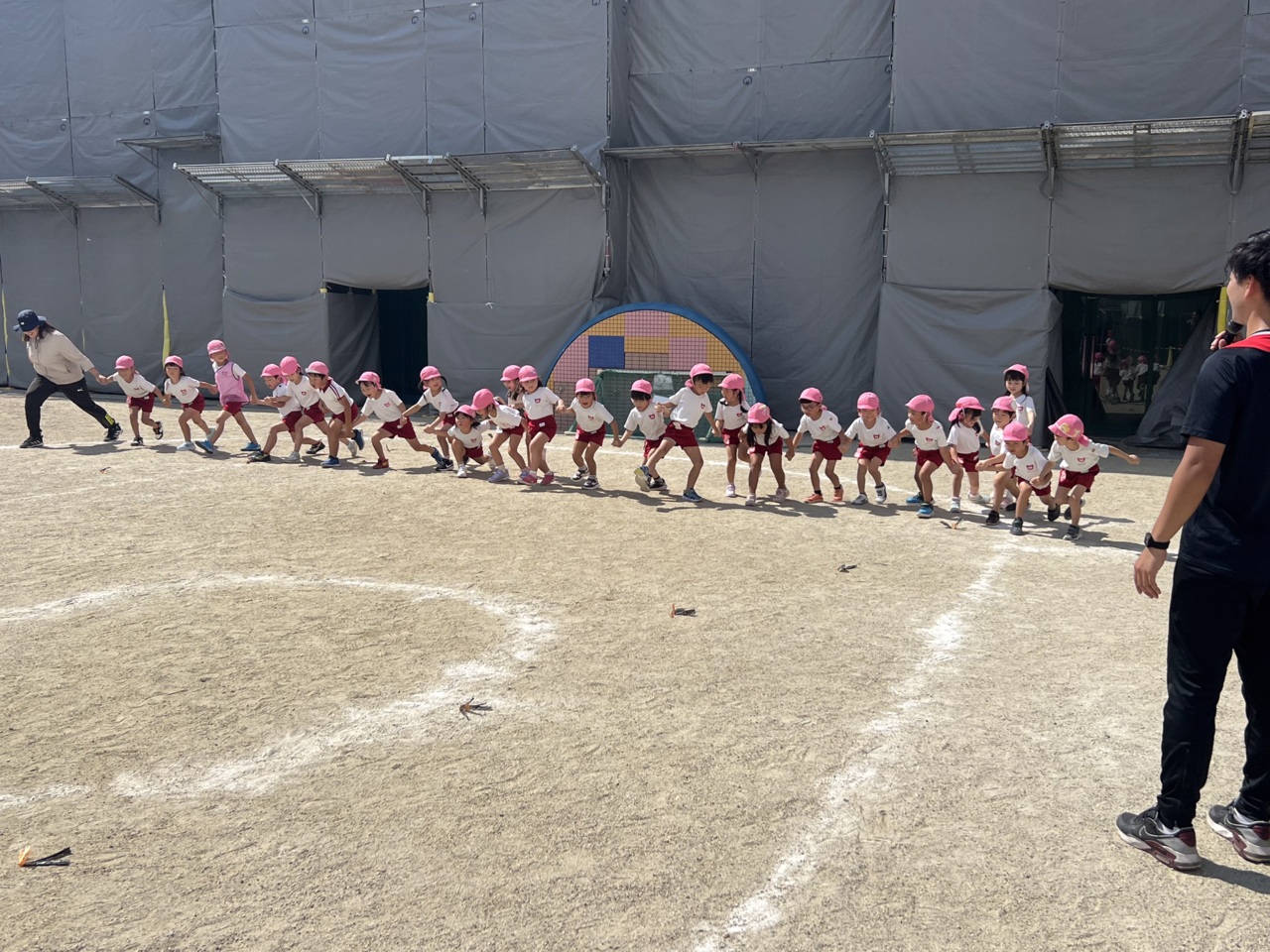 今日のエール体育は年少組でしたが、幼稚園のかけっこ競技を