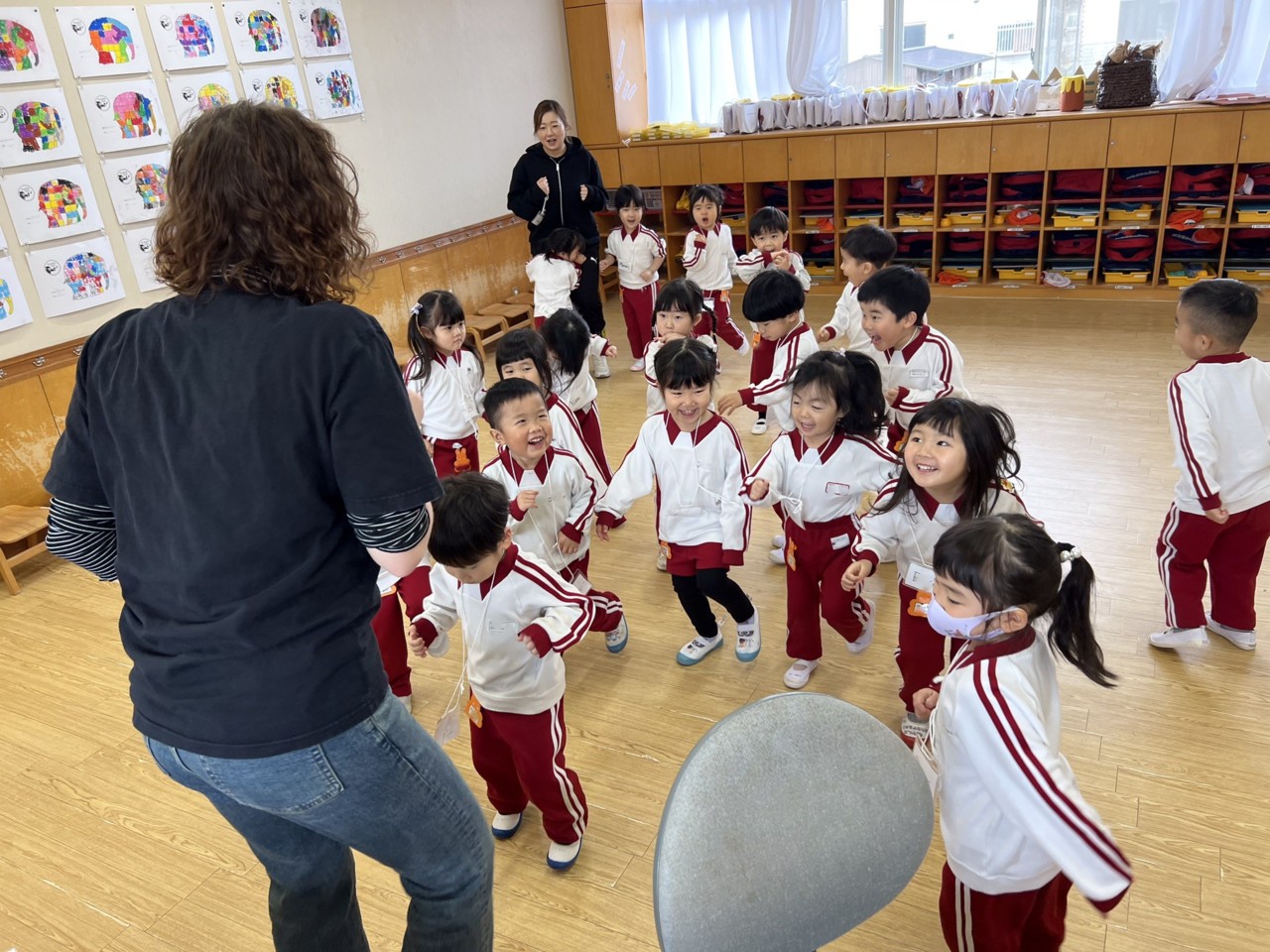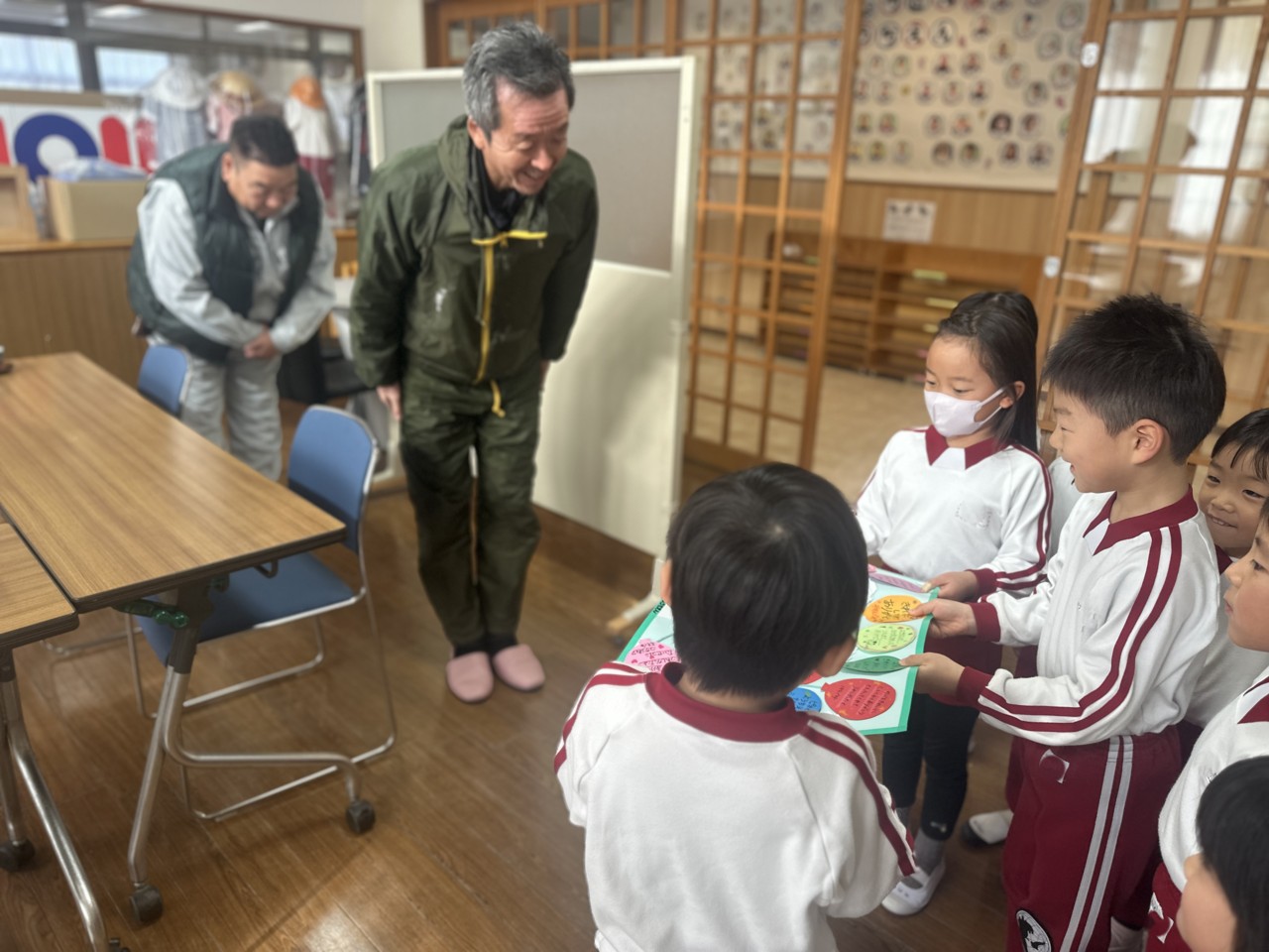 きれいになった幼稚園。子ども達代表で工事の方にお手紙のプレゼントです。