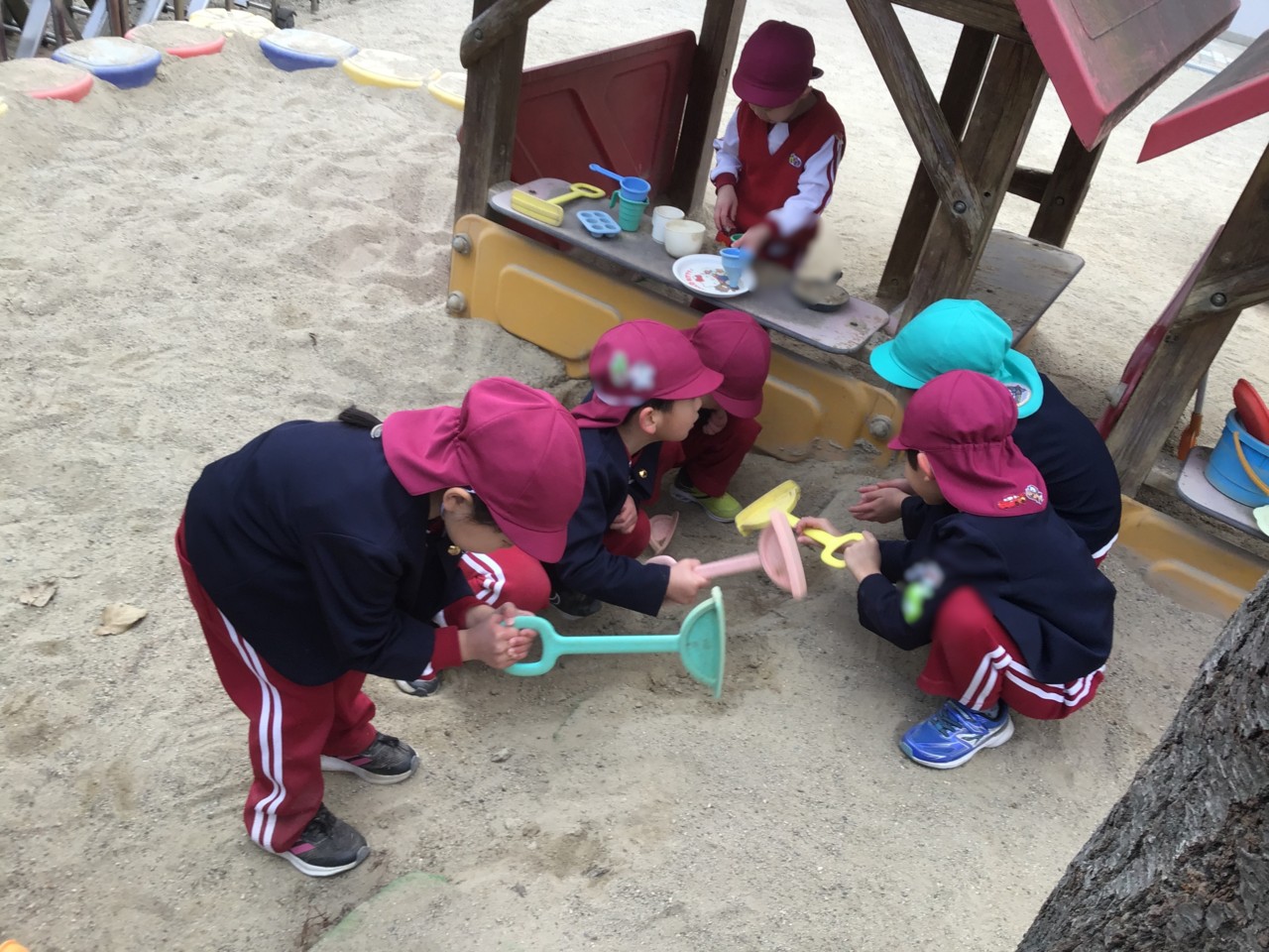 寒い寒いと言いながらも、外で走り回っている様子に、