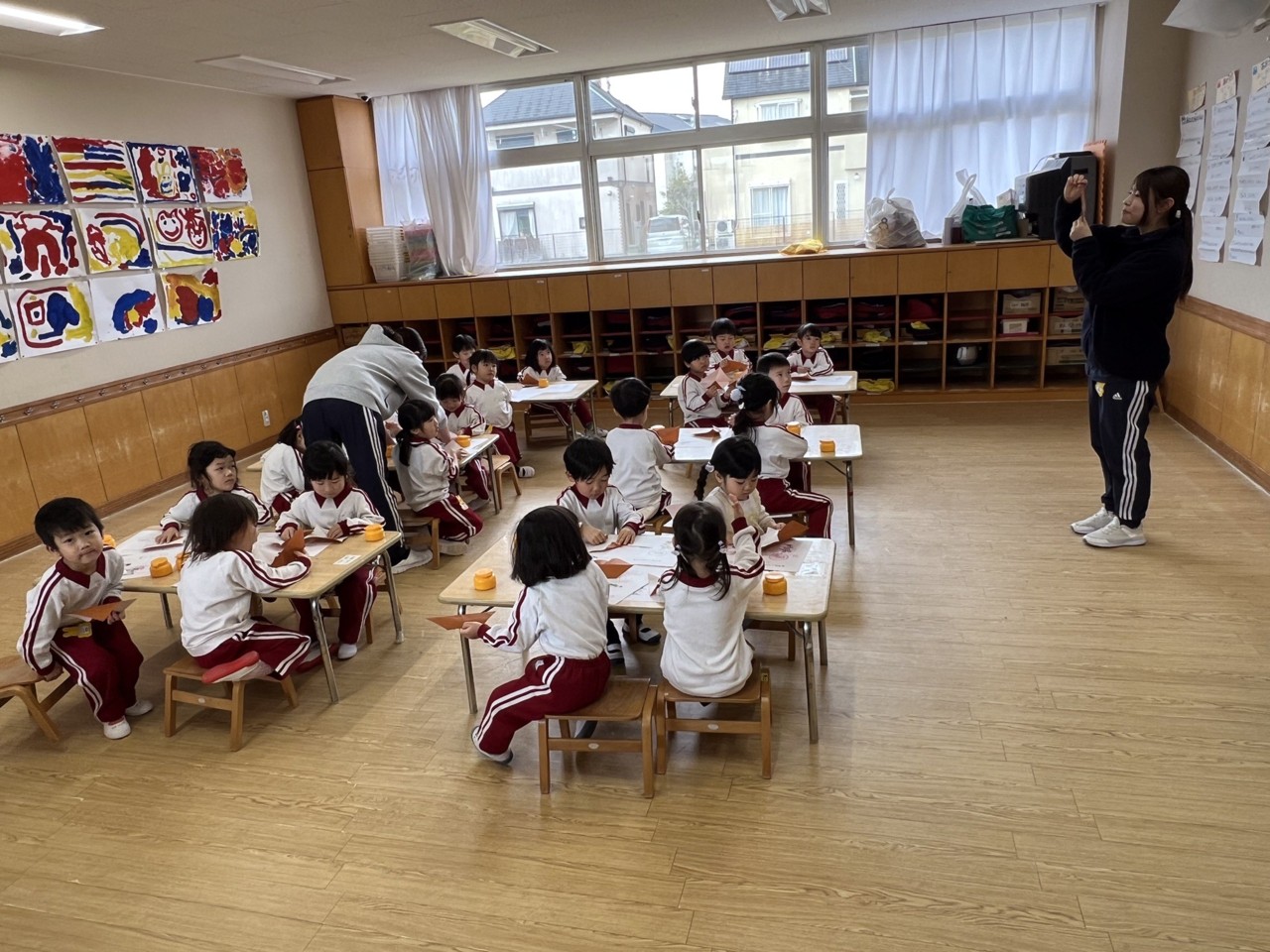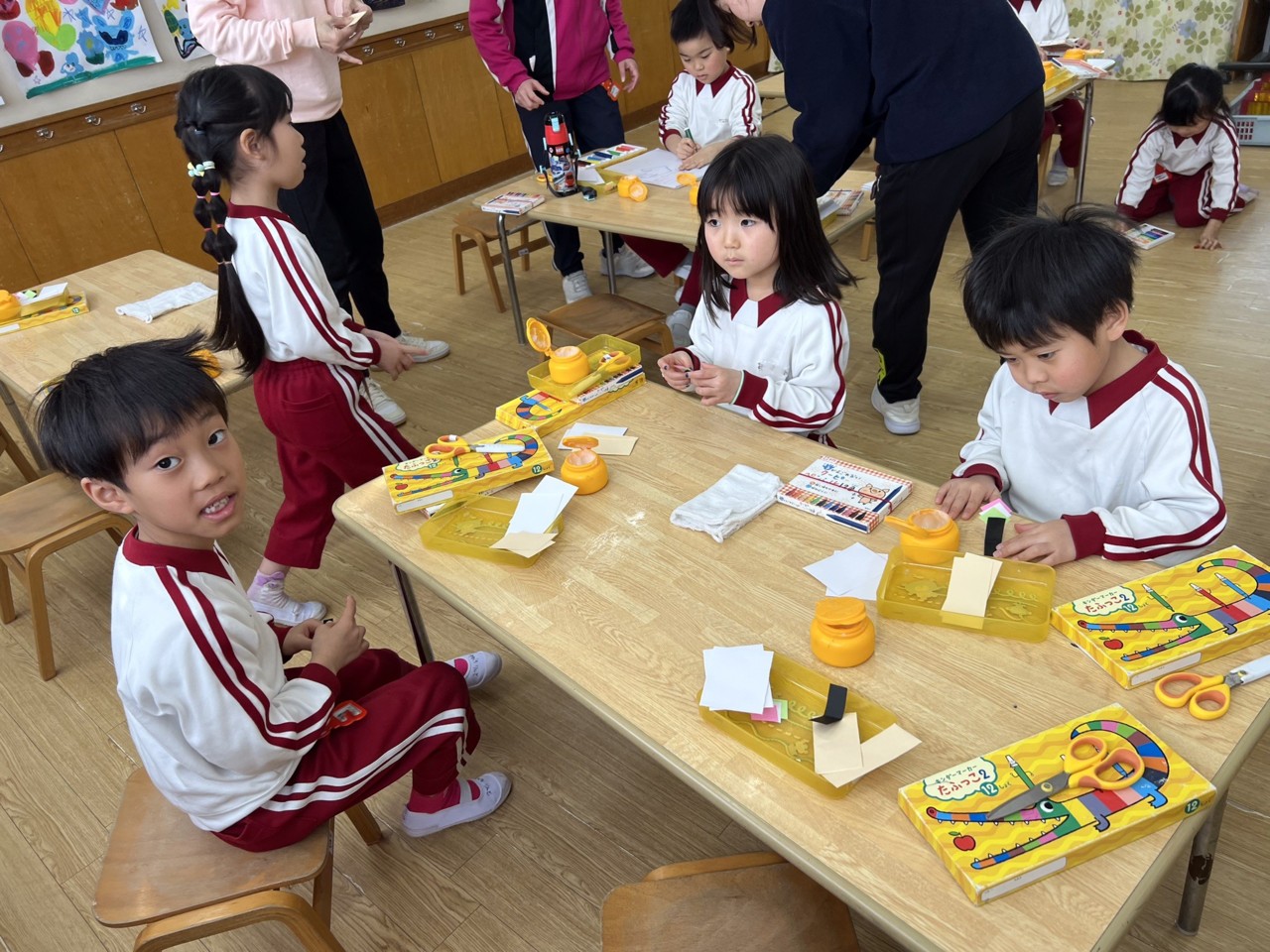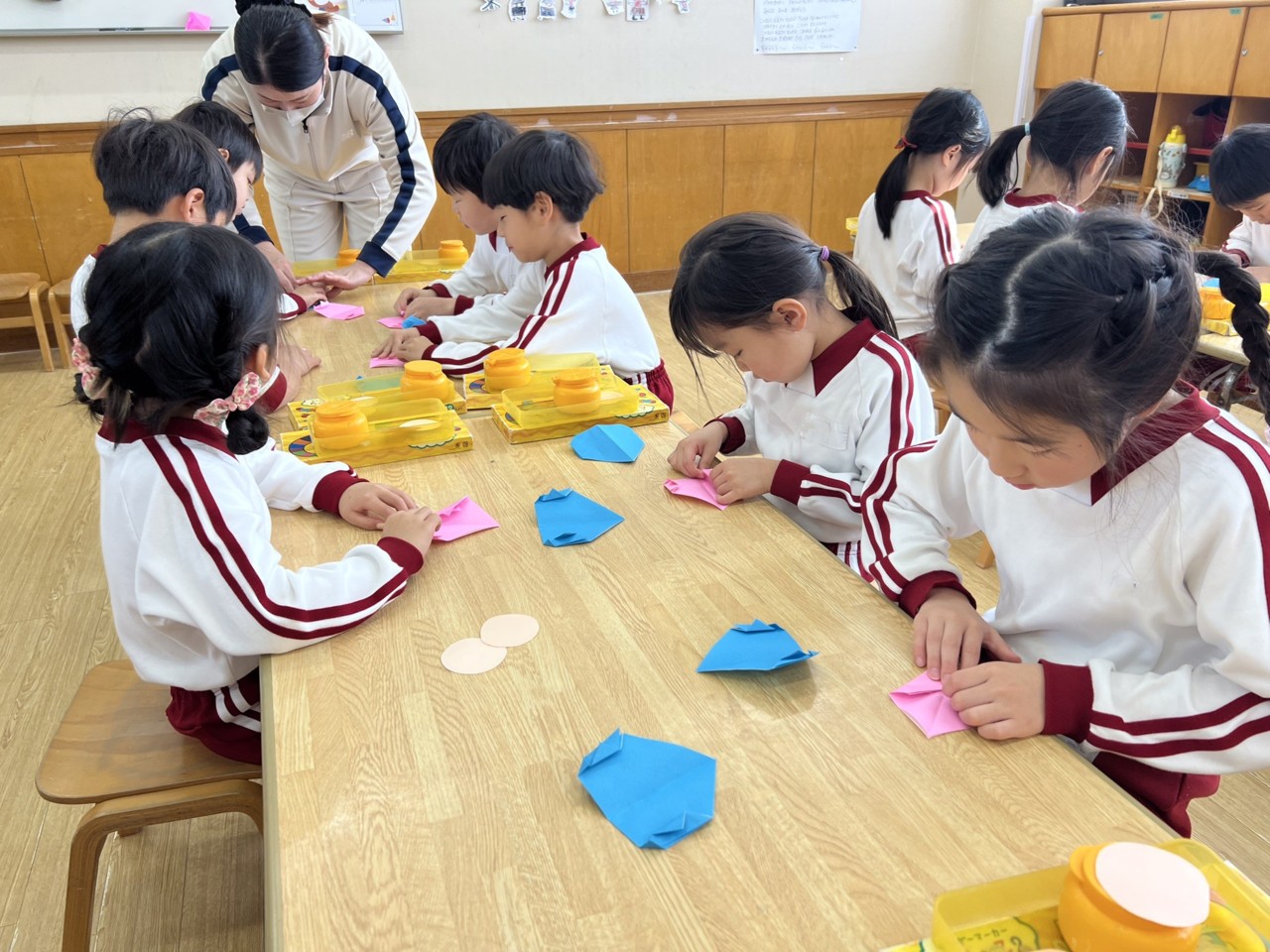 今日は年長組さんが「ひなまつり」制作をしてました。