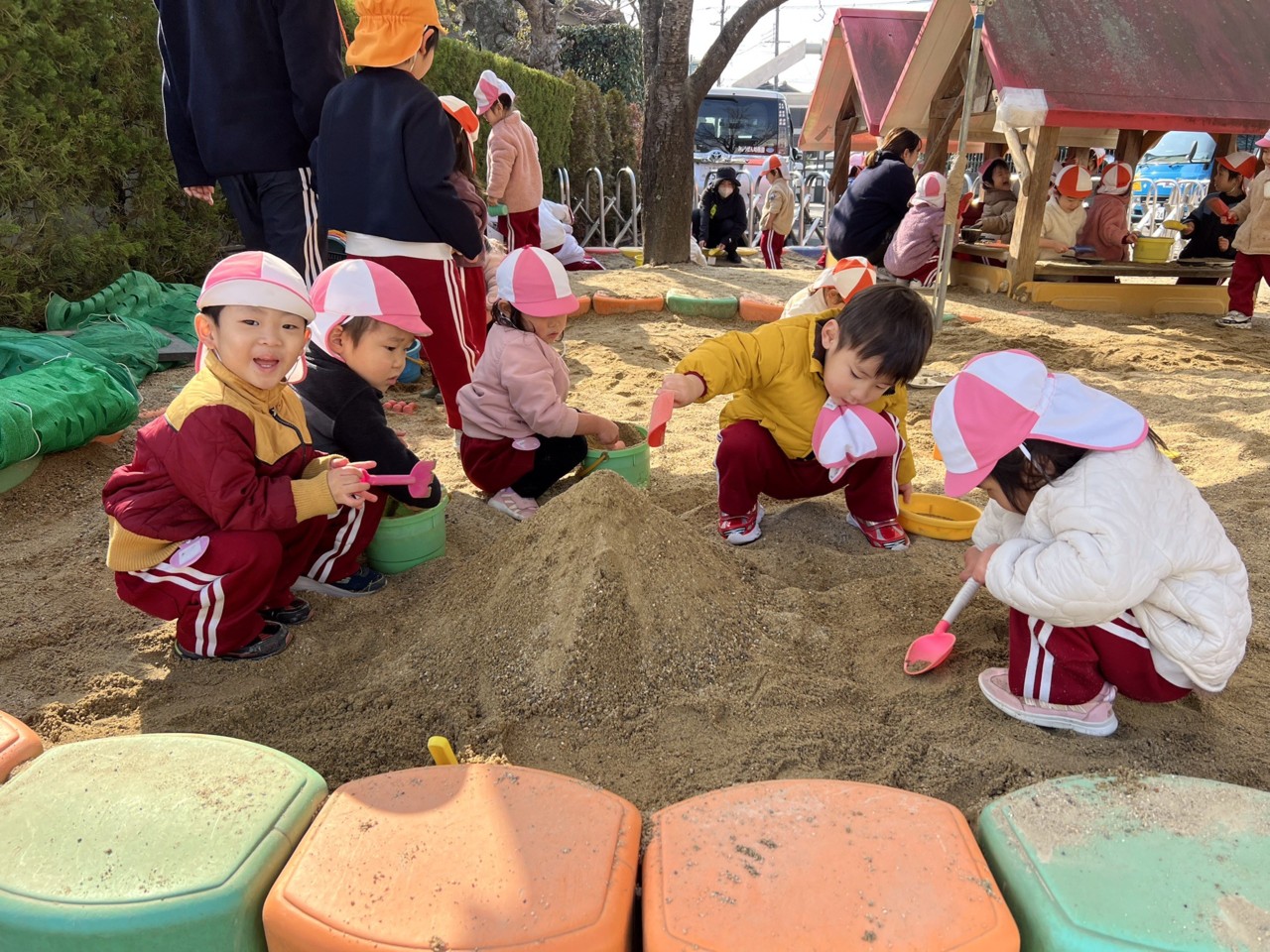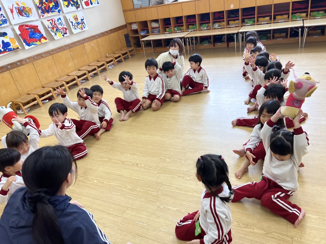 幼稚園の玄関とお遊戯室にもおひなさまが飾られています。