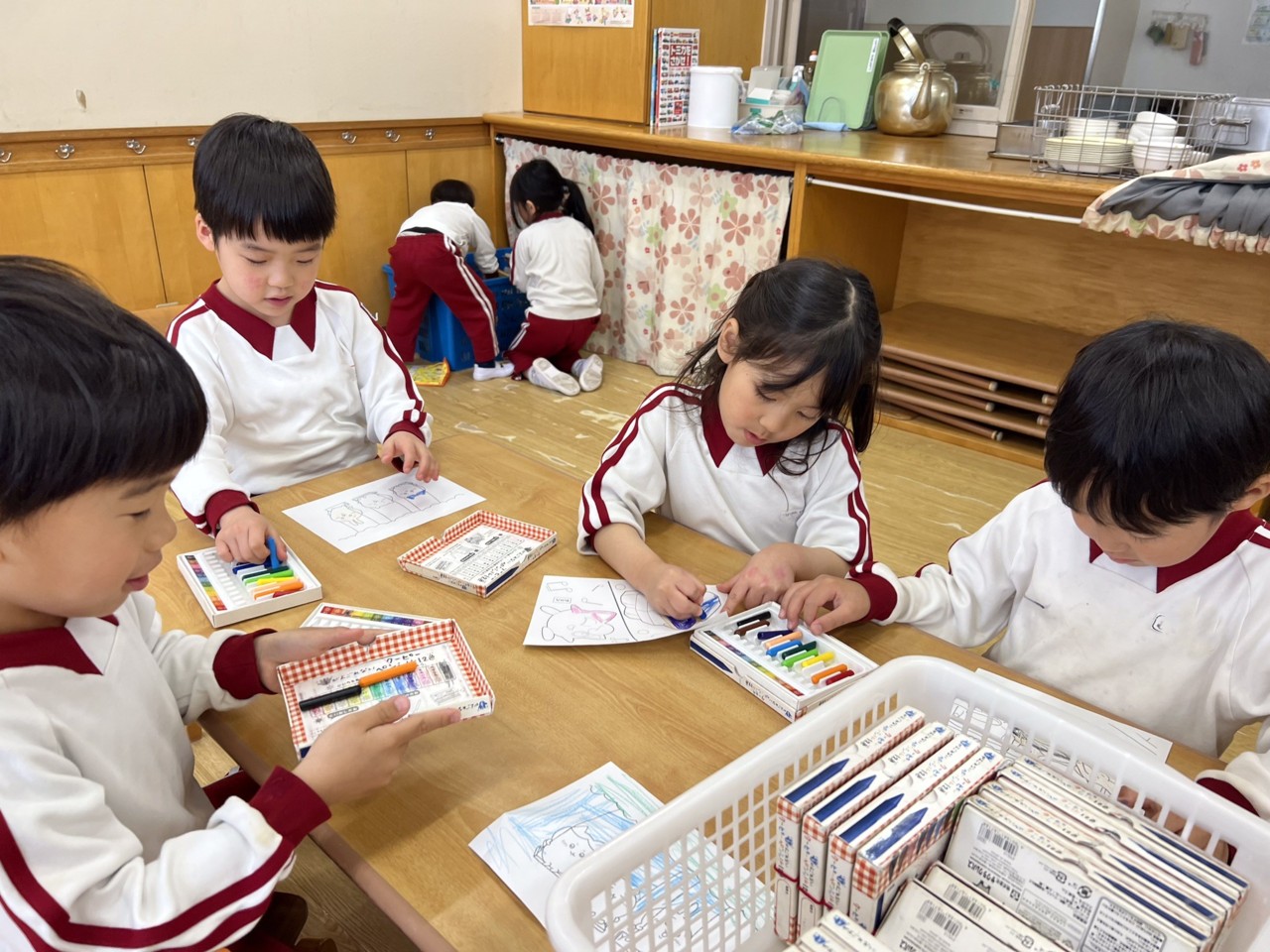 食後の自由あそび。ブロックしたり、お絵描きをしたり~